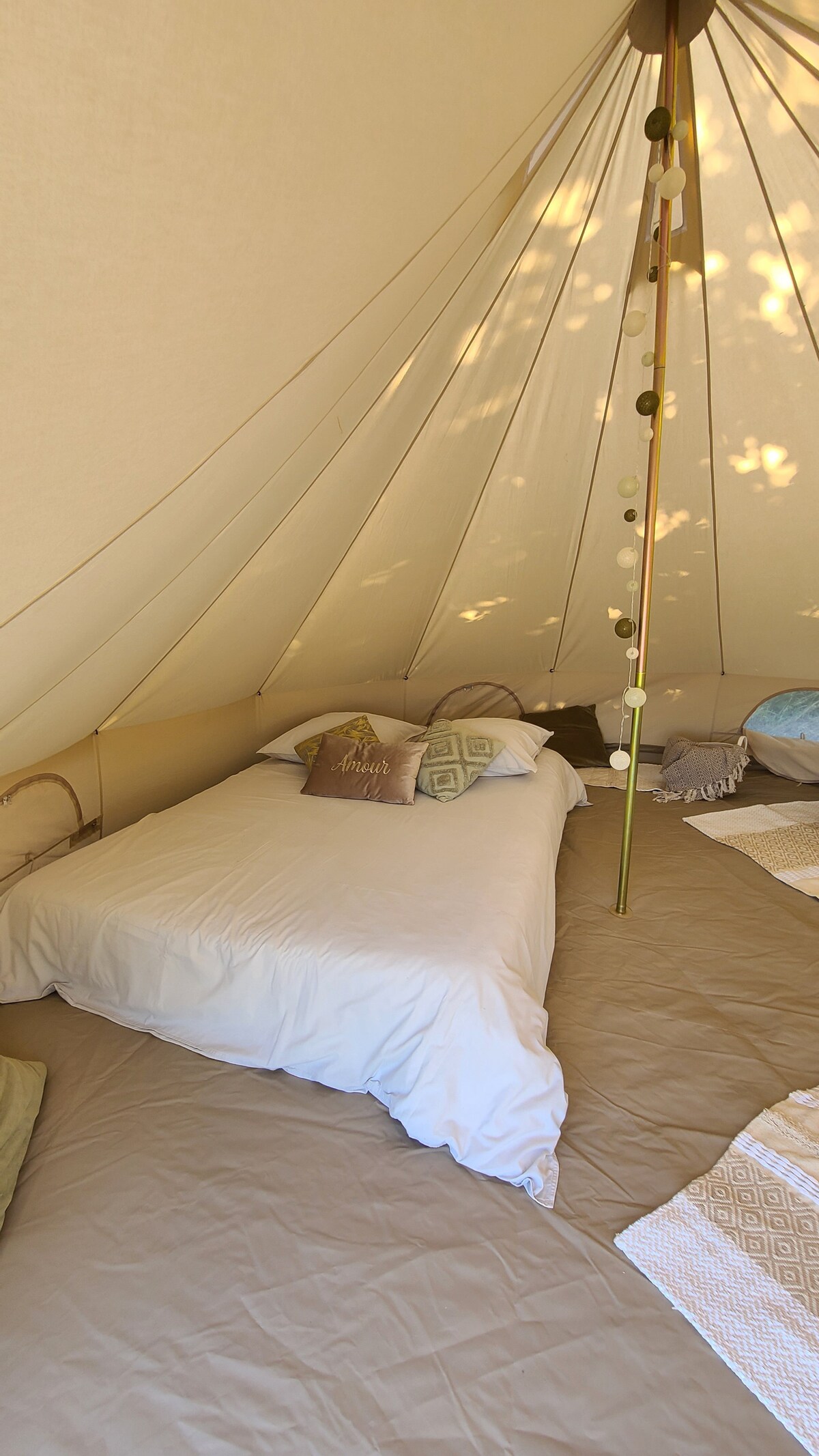 You will sleep in a cotton tent on a stilt terrace. More than 1 hectare in the heart of nature just for you! I offer unusual accommodation under the theme of well-being, simple living and ecology. If you're a nature lover, you've come to the right place! *Read the full description and let me know when booking your options. - Wellness massage from €25 - Different options for a personalized stay according to your desires and your budget!