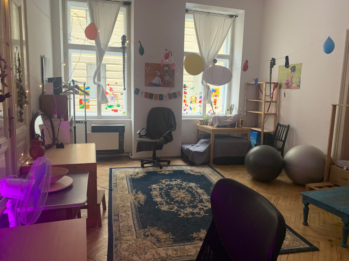 Studio apartment in an extension with a private entrance, only 4 stops from the main train station in Brno – Štýřice. Nearby sports facilities (tennis, football field, Rondo hall, etc.) as well as cafes/restaurants, plus Mendlovo Square, the Exhibition Grounds, and Kamenná Kolonie. In summer, use of a daytime seating area in the garden.