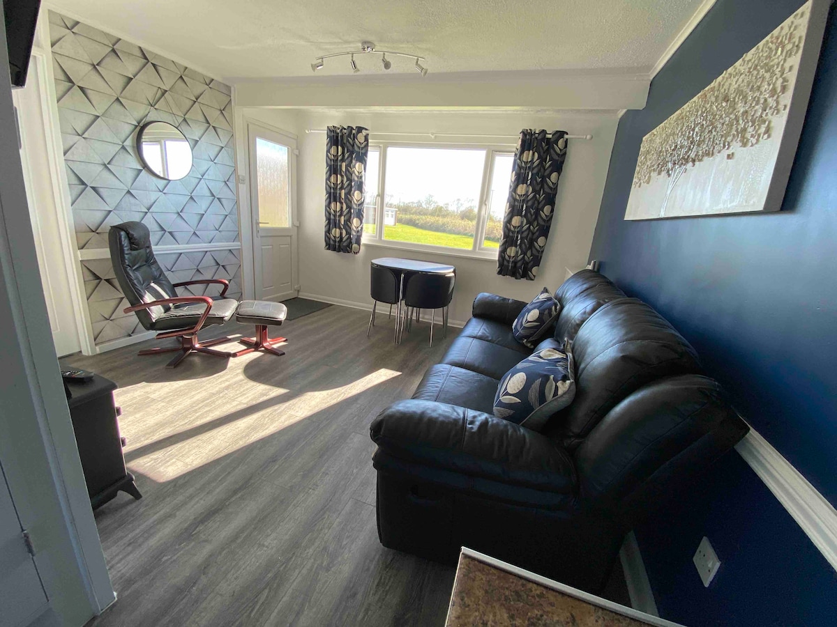 Have fun with the whole family at this stylish place. The chalet is situated in a secluded corner overlooking fields, is south facing and a sun trap. The Chalet is on California Sands Holiday park, which is a family friendly area and has Club Oasis on site for food & entertainment. There is also a swimming pool/Gym (FREE Pass included) cafe, amusement arcade, laundrette, shop, & take aways on site. only a 5-10 minute walk to miles of sandy beaches