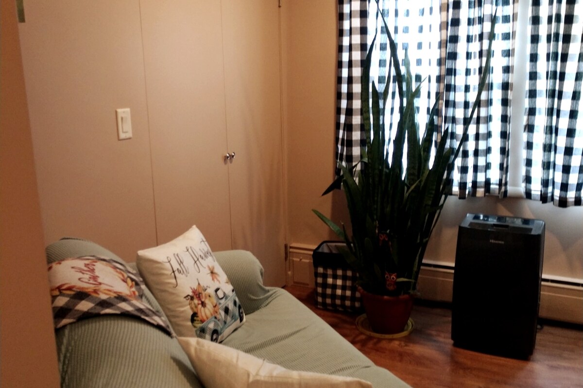 Our home is a raised ranch where we live upstairs with our two young children. The apartment is in our finished basement separate from the upstairs. Private entrance with self check in. One queen bed and one love seat pull out with twin bed. Laundry is available for monthly stays. Kitchenette and full bath. Linens, sheets, and all amenities supplied. Located within 13 mi to Binghamton and 30 mi from Sayre PA. Close to Binghamton University, all the local hospitals , and the airport.