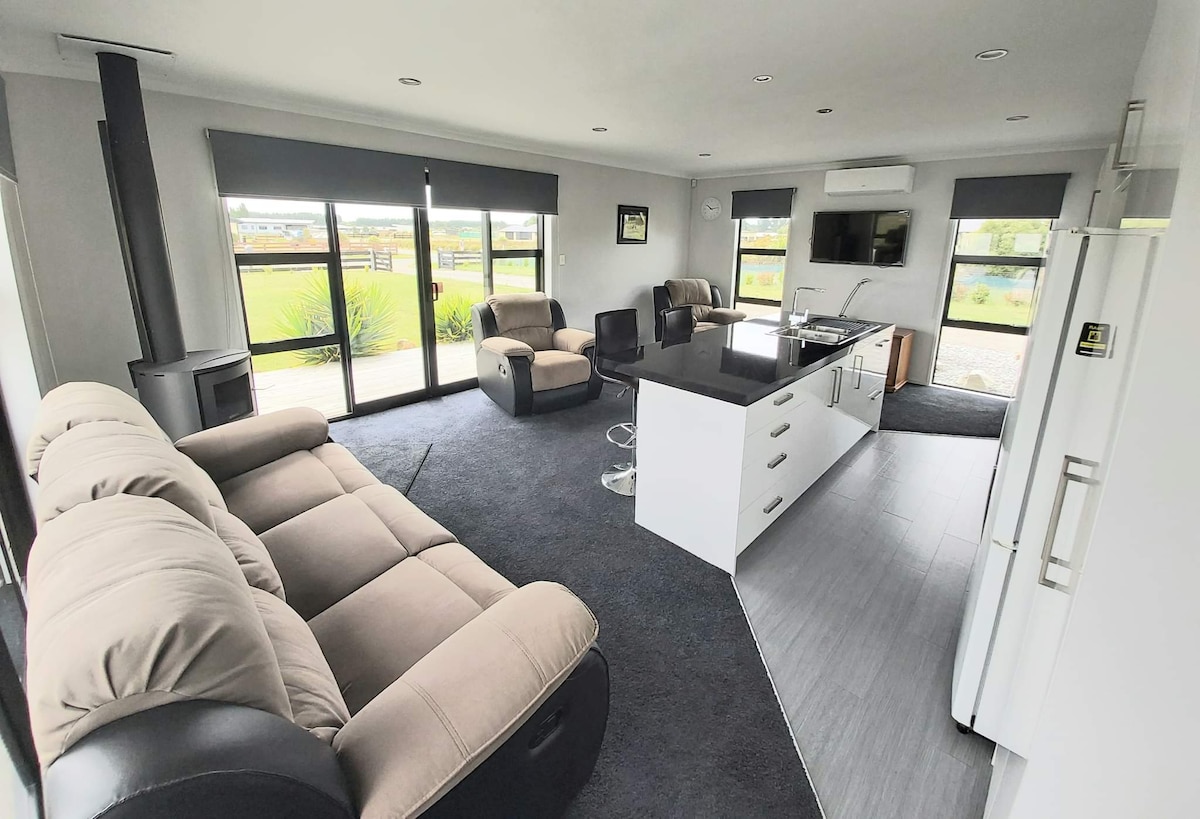 On a farm but just a few mins off SH1 and from the beach. Simple yet cosy & comfortable and loved by our family. Ideal for time out, wedding accommodation or a stop over. Handy to local wedding venue 4km away. Just $100 for 1 person (except peak season), thereafter each person is $45 pp and children $40 (we adjust once booked). Prices intentionally kept low so anyone can come here. No wifi inside this building, however, there is from close nearby.