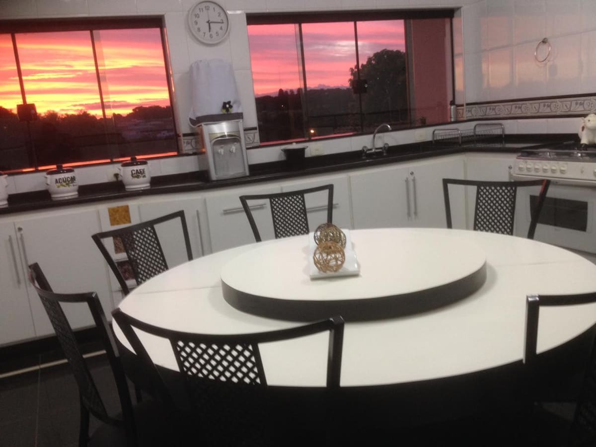 Our space has 12,000 m2 of lawn, an outdoor fireplace, two portable barbecues, pillows, kitchen utensils, a hammock, two refrigerators, a microwave, a swimming pool, two bathrooms, two kitchens, three bedrooms (one is a suite), parking, night watch, a TV room, Wi-Fi (with repeaters in the outdoor area), a TV with Netflix access and an indoor fireplace. We are 1 km from beautiful waterfalls and a free flight runway. Ideal place to relax in the midst of nature.