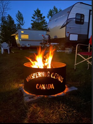 Whispering Cedars Park is centrally located in the Bruce Peninsula with easy access to both Tobermory and Sauble Beach. A very small quiet family run park with great views for star gazing. This trailer is a great way to upgrade from tent camping to glamping. A 10 minute walk to a beautiful pristine sandy beach with crystal clear water and to the lake where you can see some of the best sunsets in Ontario.. Great fishing and Bruce Trail close by.