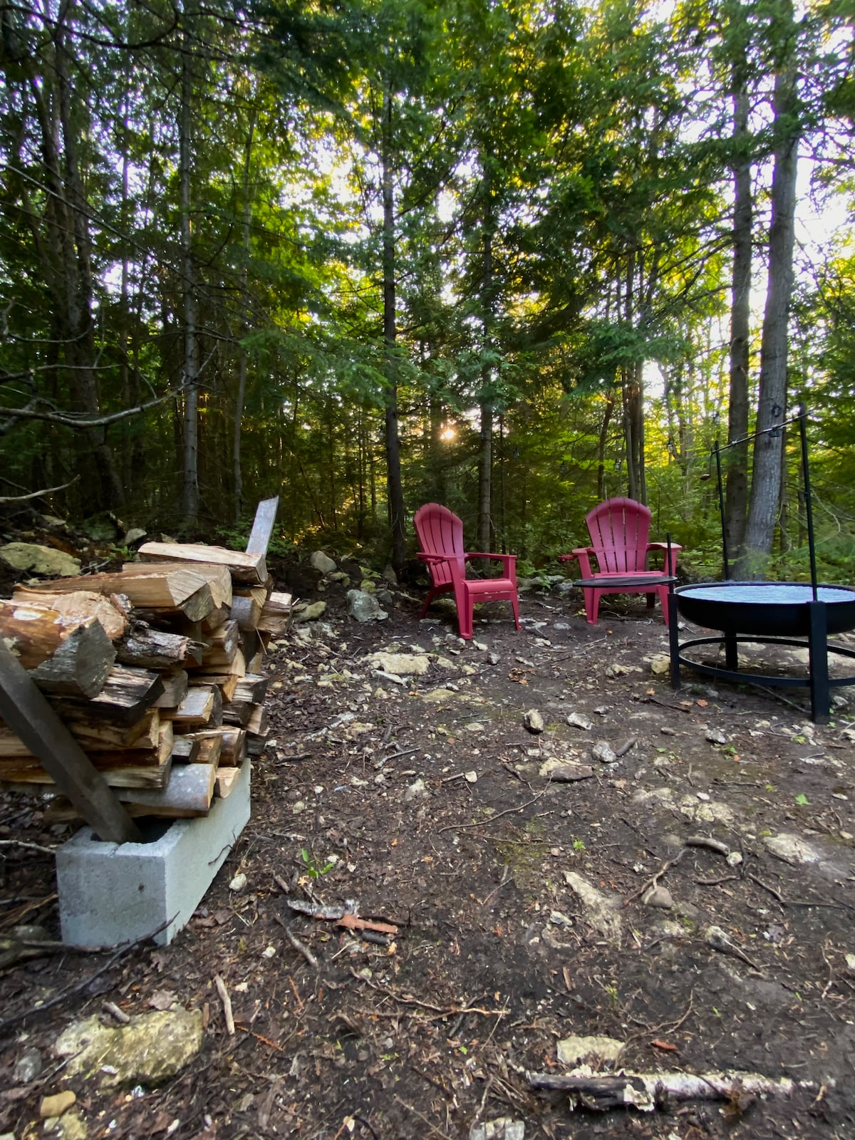 Escape to our off-grid forest campsite in the Bruce Peninsula. Immerse yourself in nature with a cozy tent (provided for your use), rustic outhouse, private shower stall with a shower bag, firepit, adirondack chairs, solar lights, and picnic table. The land is still being developed, so occasional tool sounds may occur, never early in AM or late in the evening. There is no hydro or running water on the property. Tent only, no mattress or linens provided.