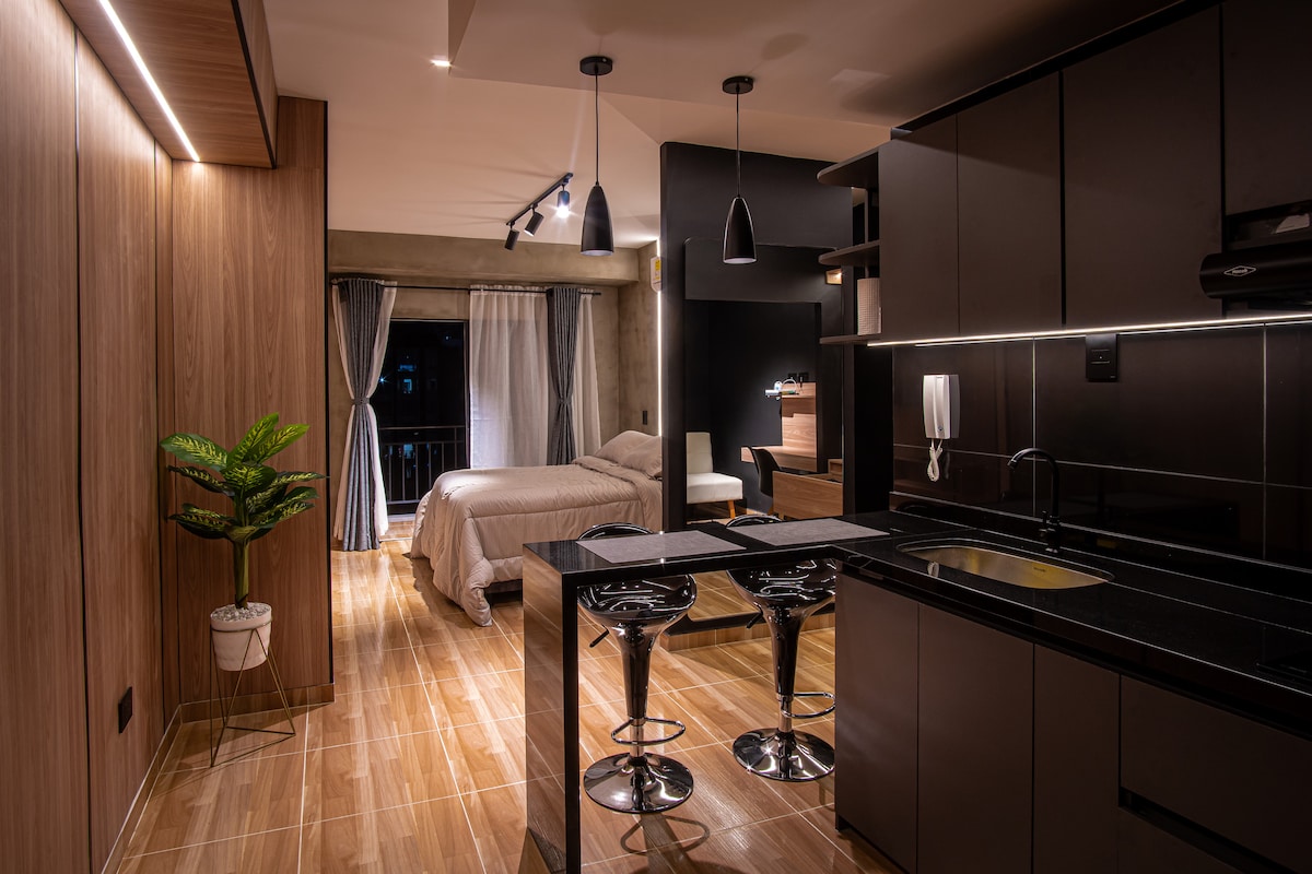 Enjoy a modern loft in Cabecera del Llano, perfect for relaxing and resting, ideal for couples. King size bed with 55" TV in front of the bed, floor-to-ceiling windows with blackout, living room with hammock and dining room, equipped kitchen, A/C, Wi-Fi with backup and power plant. Work area with table and ergonomic chair. Self check-in with codes and elevator. 24/7 Minimarket on the 1st floor. Surrounded by parks, cafes, restaurants, and shopping malls. Comfort, style, and location in one place!