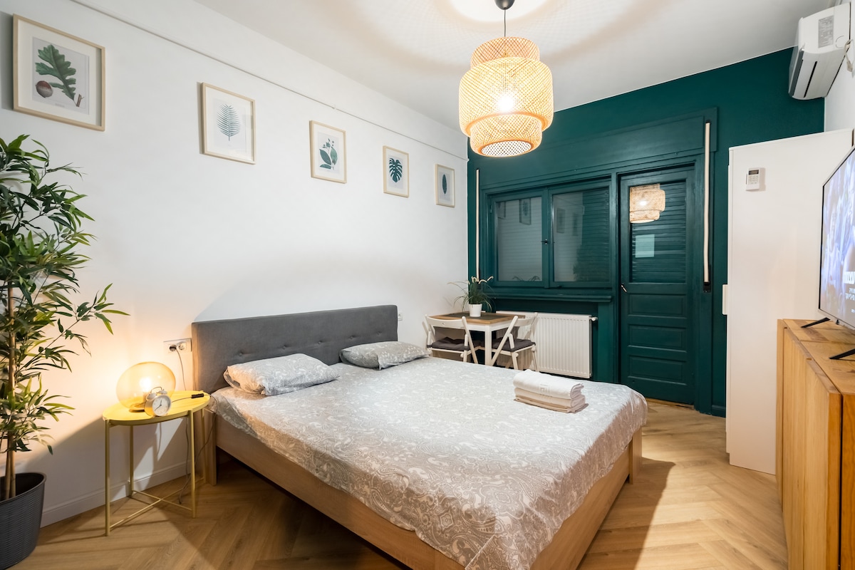 Experience the charm of our urban loft in the heart of the city! Enjoy the peace in our elegant bedroom, with wide windows that fill the room with sunlight, and settle into a luxurious marble bathroom. Located in a lovely neighborhood, this inviting space offers a fully equipped kitchen, a relaxing living area, and a small balcony. Perfect for the modern traveler who values style and comfort. Book your stay - delight in the simple luxuries and make this loft your personal hideaway.