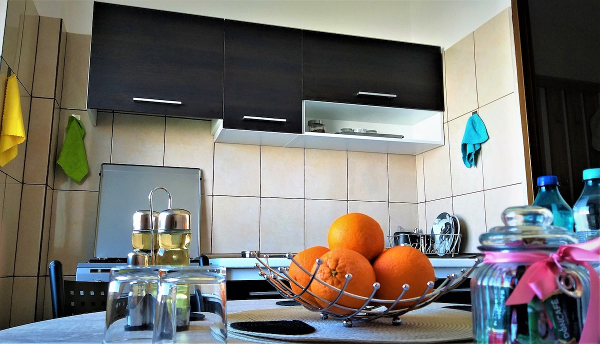 Feel yourself at home! The flat is close to the center and to all central hypermarkets! Is one bedroom with double bed and one double sofa bed in livingroom You have free wireless access,cable tv,air conditioning iron and iron board,hairdryer, fully fitted kitchen, microwave, coffee maker
