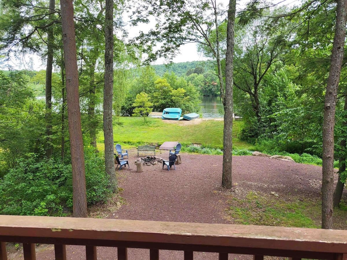 Spacious 3BR Pocono home with backyard pond, private beach, fire pit, indoor gas fireplace. Kayaking, paddle boarding, fishing, & motor-less watercraft welcome on the pond. Large deck great for relaxing outdoors & BBQ's. Close to skiing/snowboarding, hiking/biking trails, white water rafting, indoor water park, golf, racetrack, fishing, hunting, horseback riding, & other outdoor Pocono adventures. 2 hours (102mi) from Philadelphia, 2.5 hours (114mi) from NYC. Perfect for families & small groups.