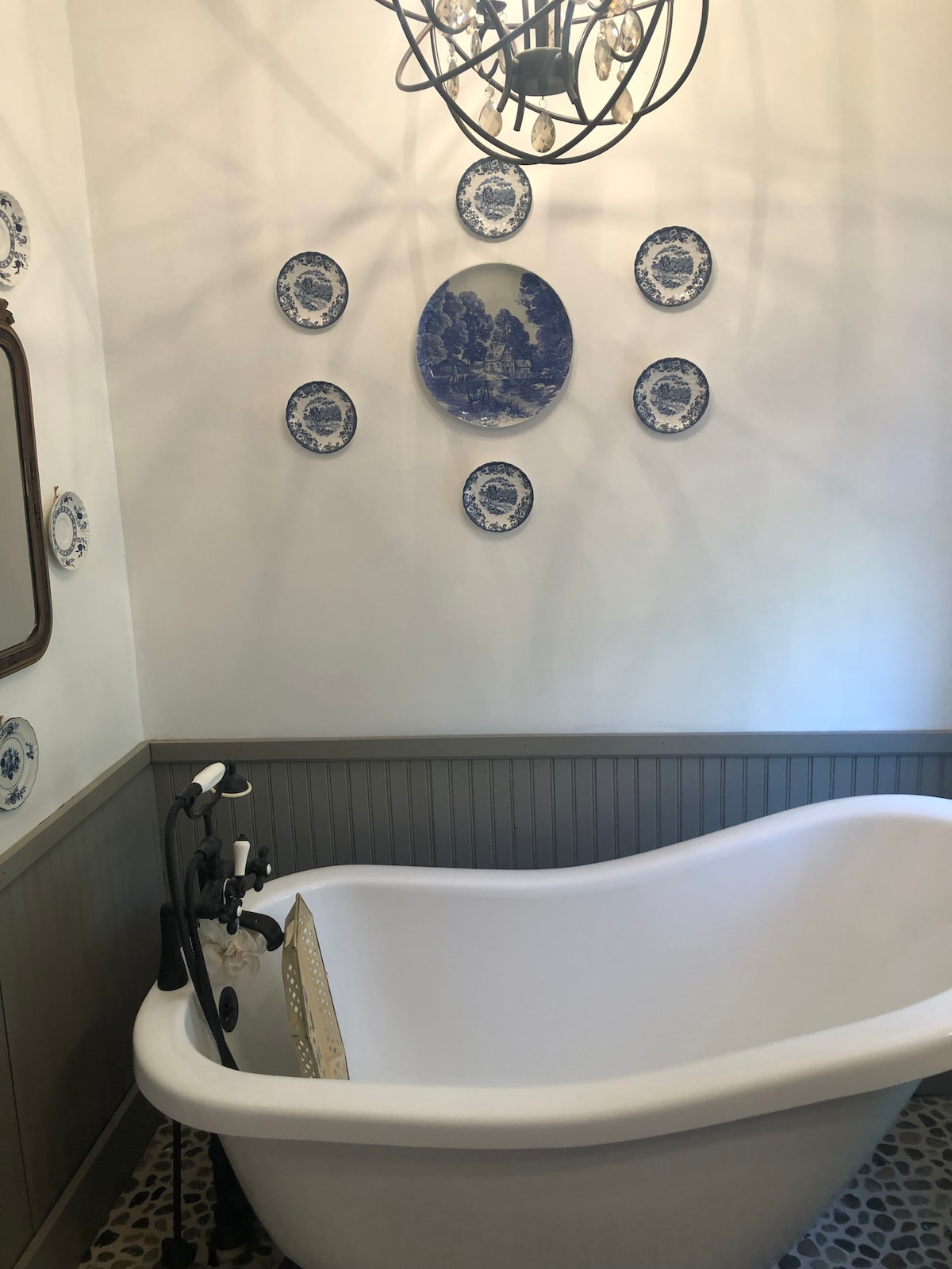 You’ll love the stylish decor of this charming room. A queen size bed, a comfy chair and ottoman for reading, and green plants encourage a restful stay. The bathroom has a claw foot tub, and a shower. Located on the second floor, but close to the kitchen and the wrap around front porch, Anna’s Room allows views of the fields and Appomattox River. Just a few steps away from the dining room where you will find coffee and breakfast items each morning.