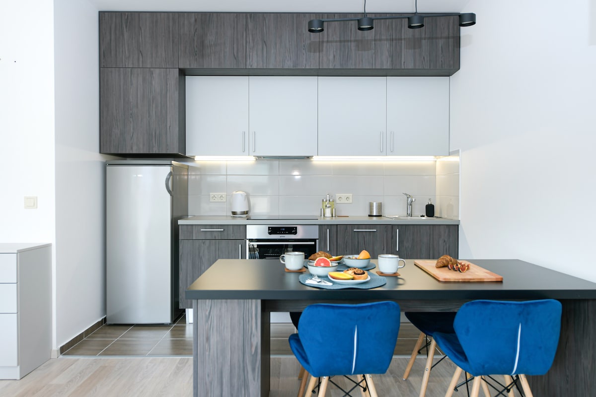Whip up a quick snack in the intimate kitchen nook at a luminous urban oasis, then head out to explore. Warm wood and matt white finishes give the space a light, modern feel. We provide a cozy workspace area outfitted with a professional display and wireless charger for greater productivity. (23,8" Dell P2422H Professional) Fast and reliable access to wifi is available to keep you connected all day long. 500 Mb/s Ideal for digital nomads and remote workers who are trying to balance work and rest