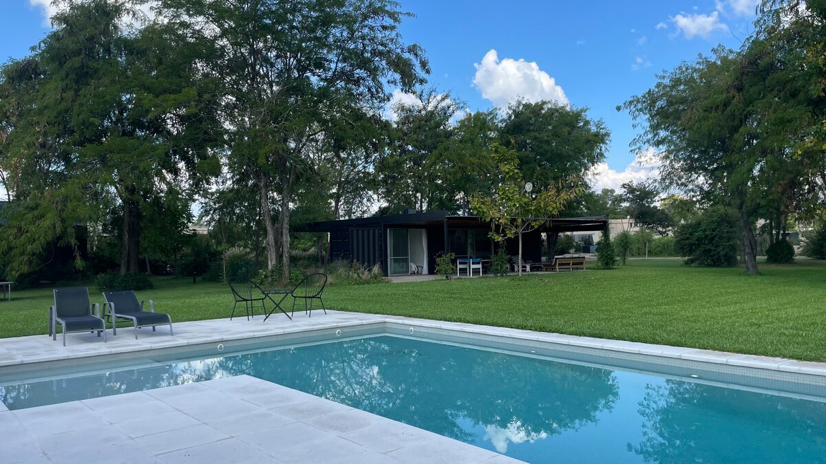 In Exaltación de la Cruz, 1 hour from the city of Buenos Aires, an ideal natural environment to rest and why not, work. Nuevos Aires is our guest house, where you will have the possibility to stay in a recycled container, properly insulated, and fully equipped for the enjoyment of your stay. As a jewel, the gallery in wooden deck with the unbeatable view to take advantage of the outside space. The tranquility that reigns in this neighborhood will make you not want to leave.