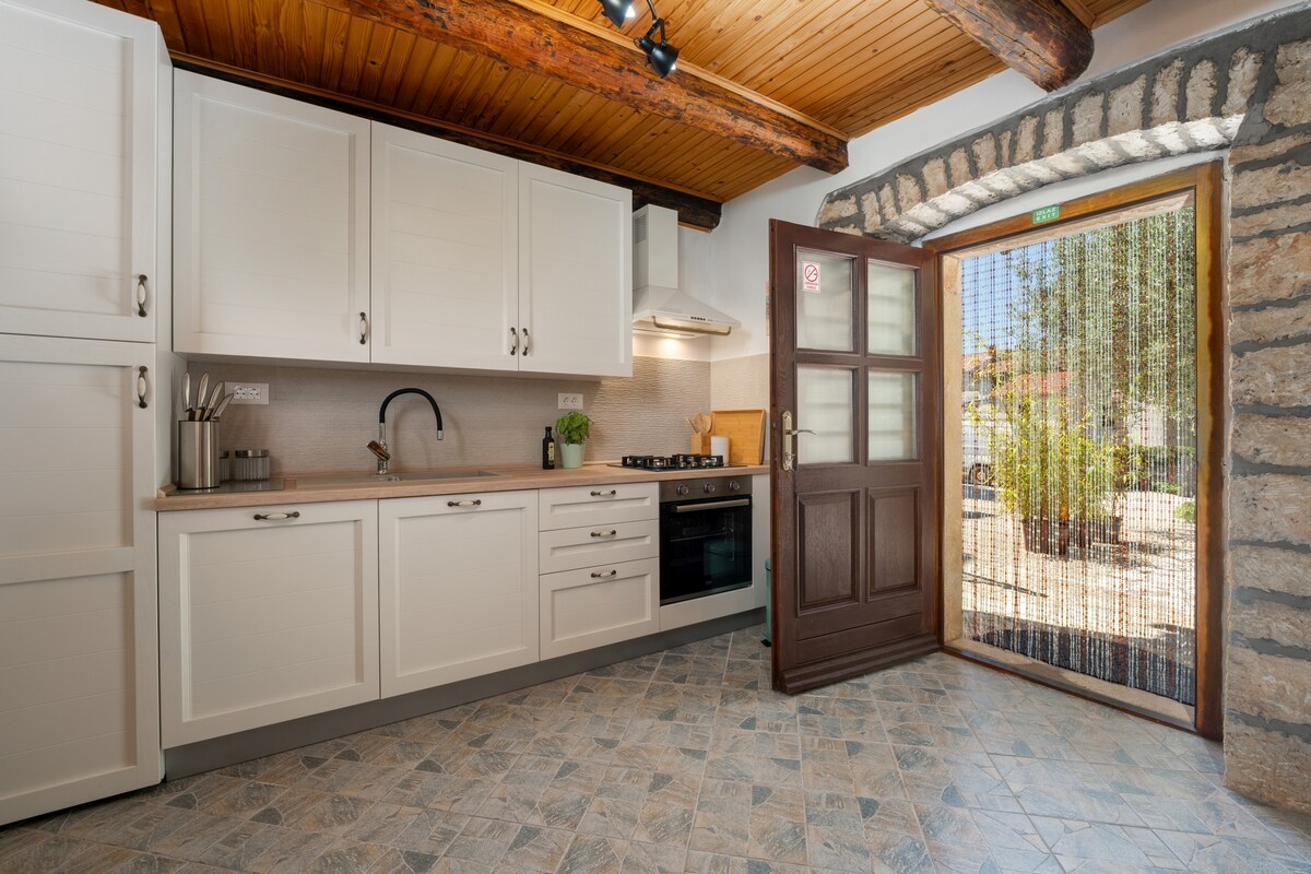 Authentic Istrian stone house built in 1922. This house is fully renovated and equipped to provide you all you need. Modern interior, fully equipped kitchen, relaxing living room, spacious bedrooms with private bathroom, an outdoor dinning area with grill, private pool and parking on the property. Each room is carefully designed by our designer. All this will afford you enjoy your holidays and fill up your batteries.