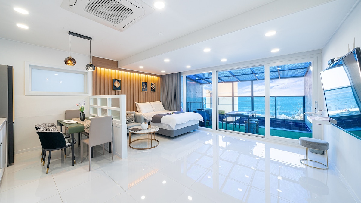 ☆Reservation inquiry: Gongil Gong Old Oilsa Iphalpalsa☆ ☆Text reservation available☆ ☆Yes. Per E. Burse Search Vacation☆ ☆Instagram @ huegadang☆ Ocean view of the○ entire space/Sunrise from the bed/Use the entire second floor of the two-story building (using the external separate stairs) Have ○ terrace, rooftop, outdoor jacuzzi (available from May, hot water)/parking lot Seaside promenade in front of the○ accommodation, bathing possible