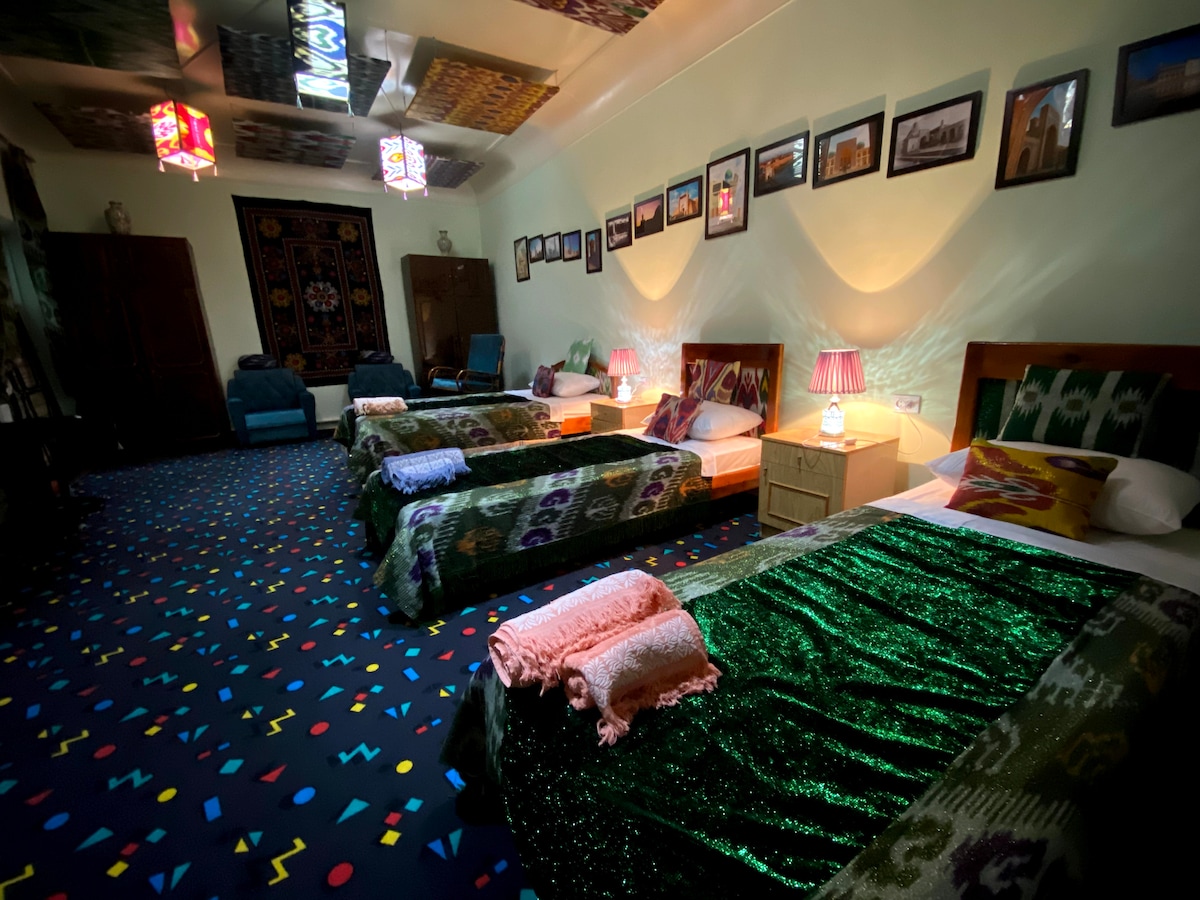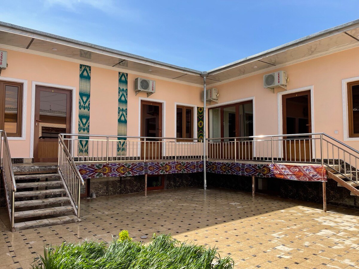 Warmth and comfort at a comfortable price We are located inside Bukhara's old city. It is 5 minutes walking distance from Chor Minor and 10 minutes from Lyabi Hovuz. In our place, you will feel like you stepped right into a traditional Uzbek home and will be welcome as a part of the family. Wifi is available.