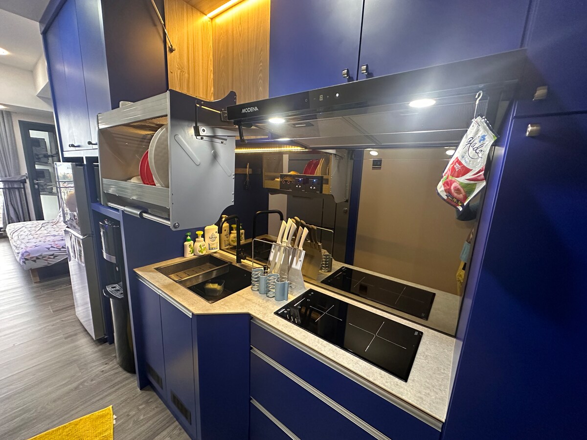 Kick back and relax in this calm, stylish, air-conditioned space with its best view of the harbour on the highest floor of the tower. It comes with a pool and a gym facility in located in the same tower. The studio apartment features a spacious bedroom with a LED smartTV, a kitchen with a microwave, a washroom with a storage heater, a dressing table with a hair dryer. Within the establishment, there is a shopping mall with eateries, hair salon, laundry shop, a bar and a 24hr convenience store.