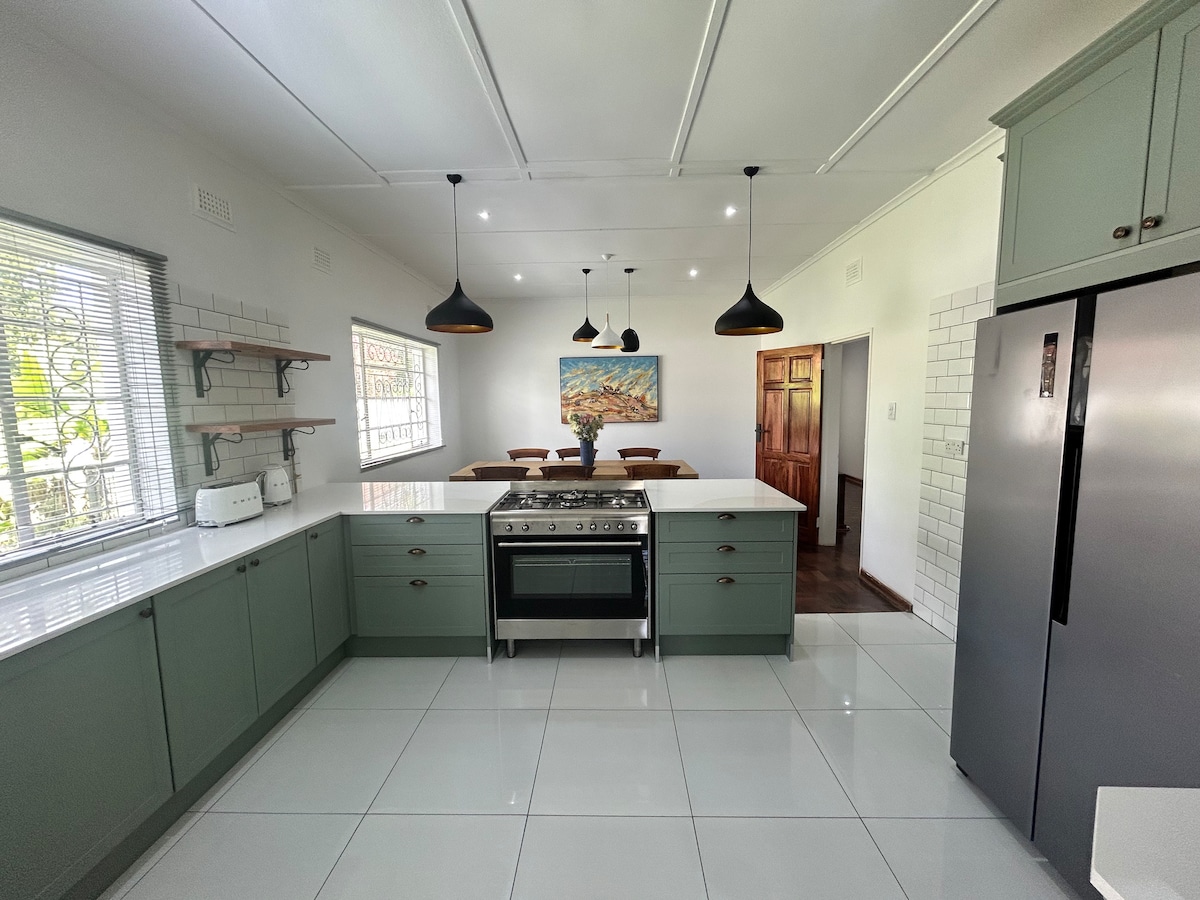 NovaNest – Recharge in Comfort King-size ensuite 🛏️ Outdoor firepit 🔥 Super Wi-Fi & workstation 📶🪑 55” & 43” Smart TVs with DSTV 📺 Fully equipped kitchen 🍳 Solar power & water backup ⚡ Secure parking 🚗 Private, safe neighborhood 🧘 📍 Nearby: 2.2 km from New Mozambik Restaurant