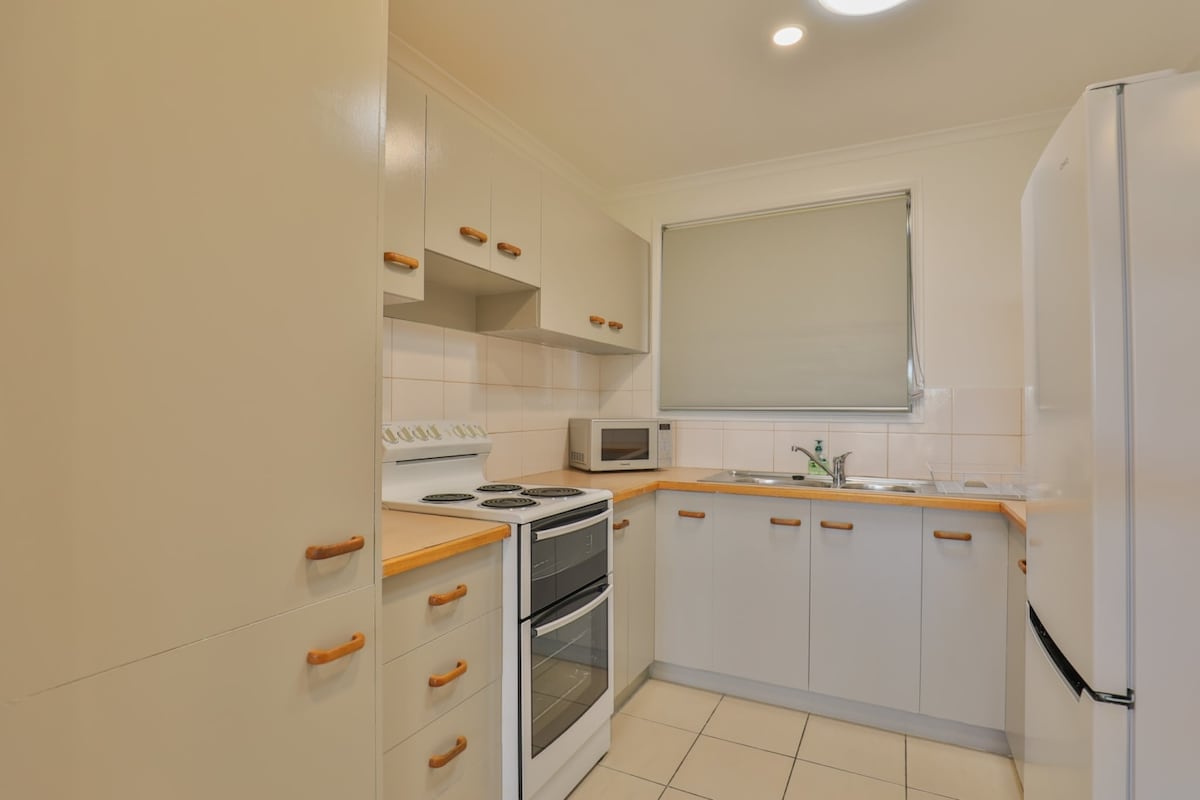 Dynamic pricing discounts for smaller groups! Please see our "Guest Access" section for more details This unit is designed and set up for the for affordable comfortable travel. Centrally located this brick and tile unit is one level and a great alternative . Positioned at the back of the unit complex of 4 units on the North Eastern side backing onto a residential house and another unit block of 4 you are walking distance to a major shopping center being Hinkler Central.