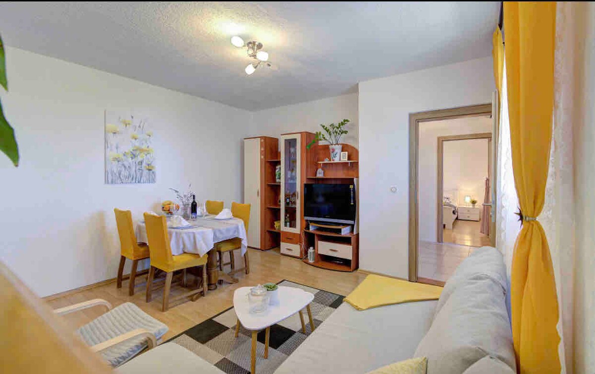 Bright and comfortable modern apartment, just 10 meters from the restaurant, few steps away from the beach and with amazing view on the sea and the city, with fully equipped kitchen, WiFi, TV. It is located in a small and quiet place only 3-4 minutes drive from the center of town Senj. Apartment is situated in the house, at the first floor and has two balconies.