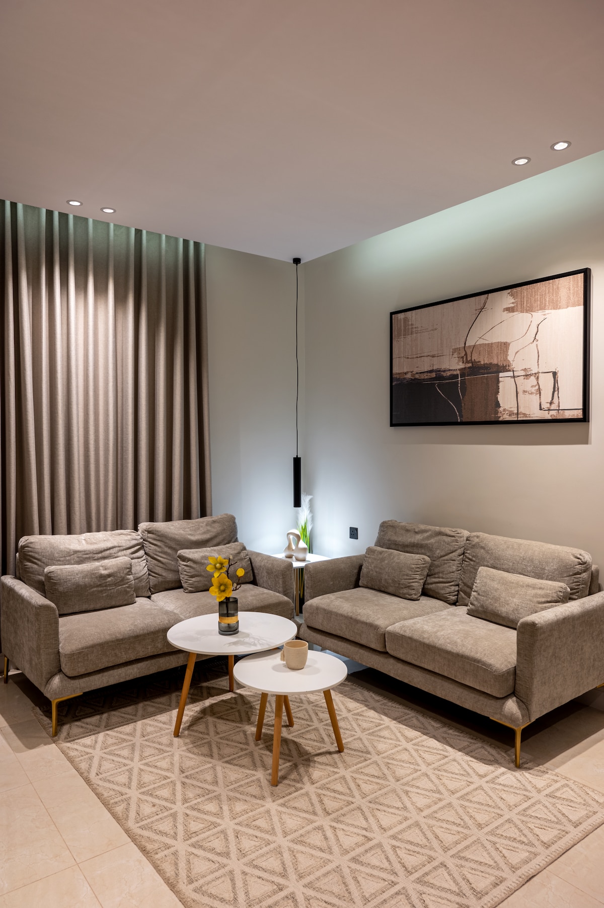 *Your luxury hotel apartment: a comfort and luxury experience* Enjoy a luxurious hotel experience in your own apartment. With elegant interior design and beautiful décor, you'll find yourself in a world of calm and relaxation. - Luxurious living room with comfortable sofas and 70-inch TV with 4K resolution. - Master bedroom with a large bed and a comfortable mattress. - A cinematic experience with a surround sound system. - A coffee corner equipped with the best types of coffee and drinks. - Free high-speed Internet to stay connected. *Enjoy unforgettable luxury* in your luxury hotel apartment. Ready for a unique experience?