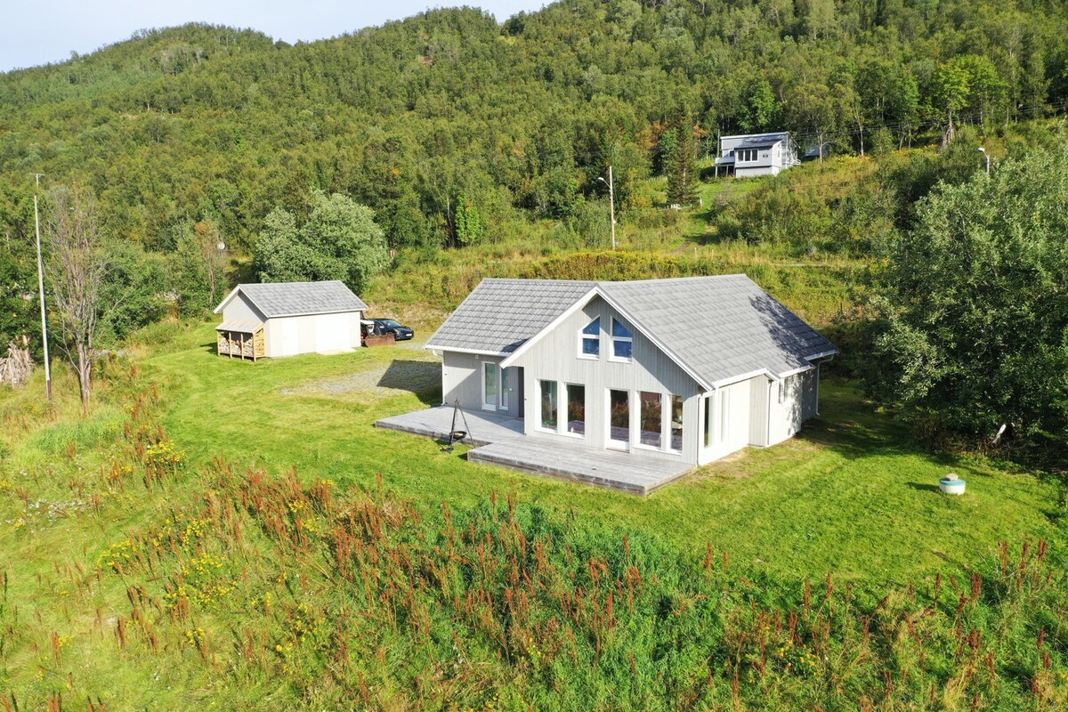 Hytten ligger på et berg bare 50 meter i fra havet med en fantastisk utsikt over Lyngenfjorden med Lyngsalpene i bakgrunn. Utsikten er unik! Hytten ble tatt i bruk i 2016 og har alle fasliteter både for korte og lengre opphold. Hytten er lun og varm, med peis i stuen, varmegulv i alle oppholdsrom og aircondition/varmepumpe. Hele fronten av hytten består av glass fra gulv til tak. Her finner du ro og velvære som gjør godt for kropp og sjel. For ekstra nytelse kan man ta seg ett bad i Jacuzzi.