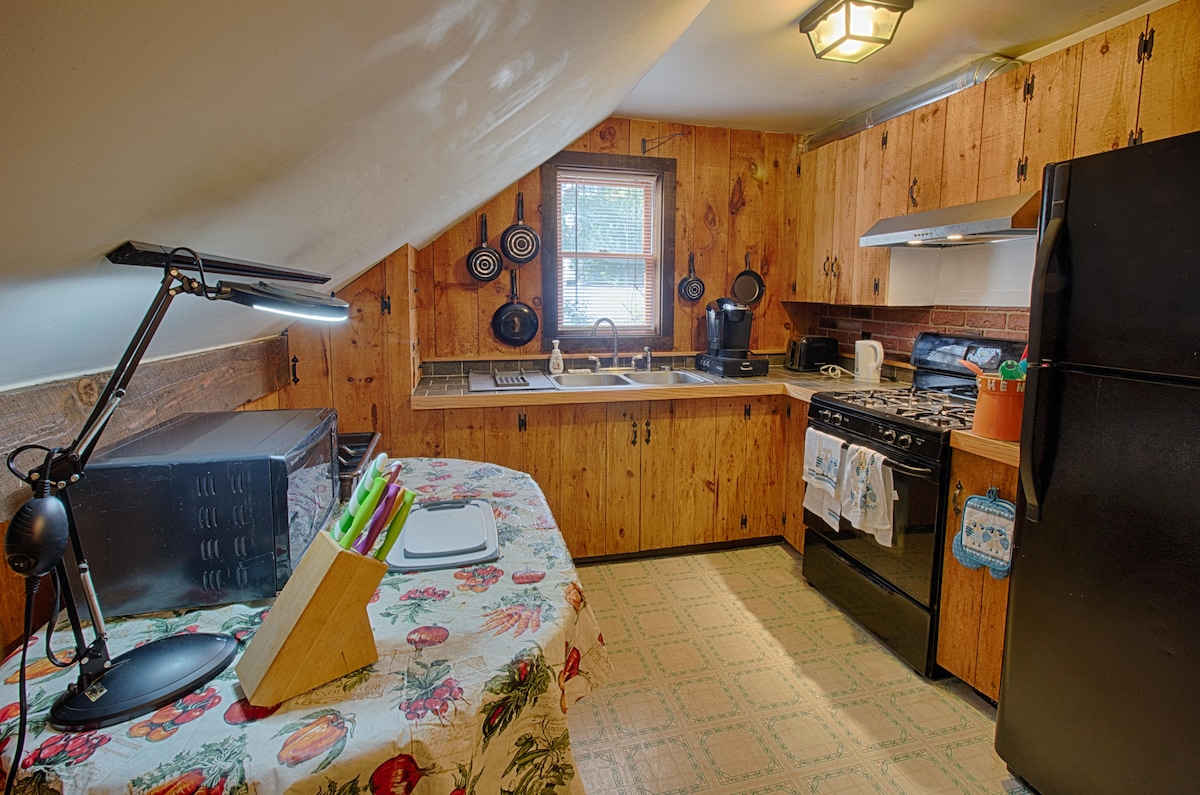 Spacious second story post and beam room adorned with king bed, full kitchen, bath, living area, and laundry. The guest house is located on 40 acres of wilderness with mountain views, and walking trails on the property. Just two miles from Stone Mountain Arts Center, 15 minutes from Fryeburg village, and only 25 minutes to neighboring North Conway, NH. A great retreat for all seasons. TV, High-Speed Internet, AC, Heat, Ceiling Fans, New Construction.