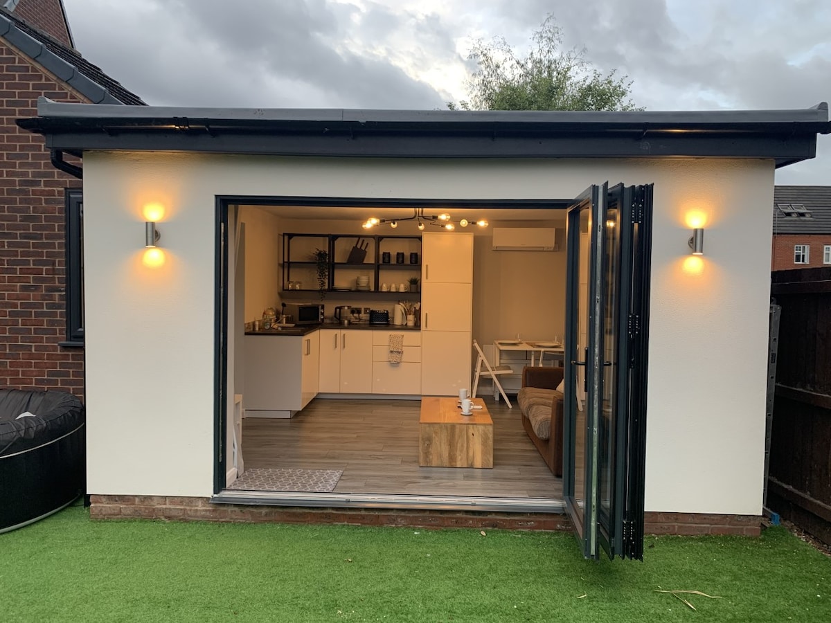 Welcome to our annexe! Situated in our back garden (with its own private entrance) , our cosy annex was completed in 2021 to a high standard. The annex comprises of double bedroom, bathroom, living area (that can be converted into a separate sleeping area) and a well equipped kitchenette. Located centrally within Chapelford, there is a pub (serving food), supermarket, chemist, park and train station (with direct trains to Manchester and Liverpool) all within a 3 minute walk.