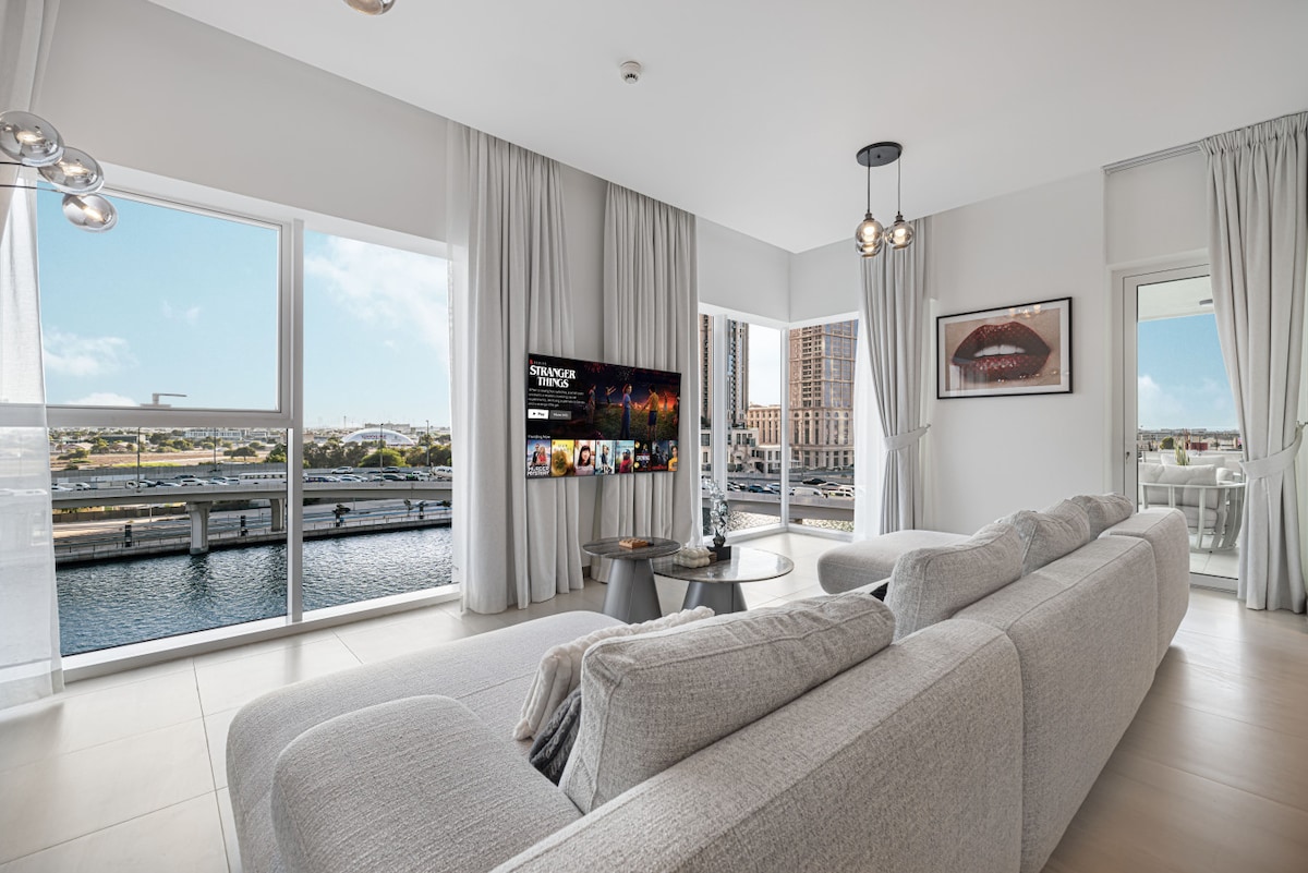 Chic 2BR in Dubai with Burj Khalifa & Canal Views
