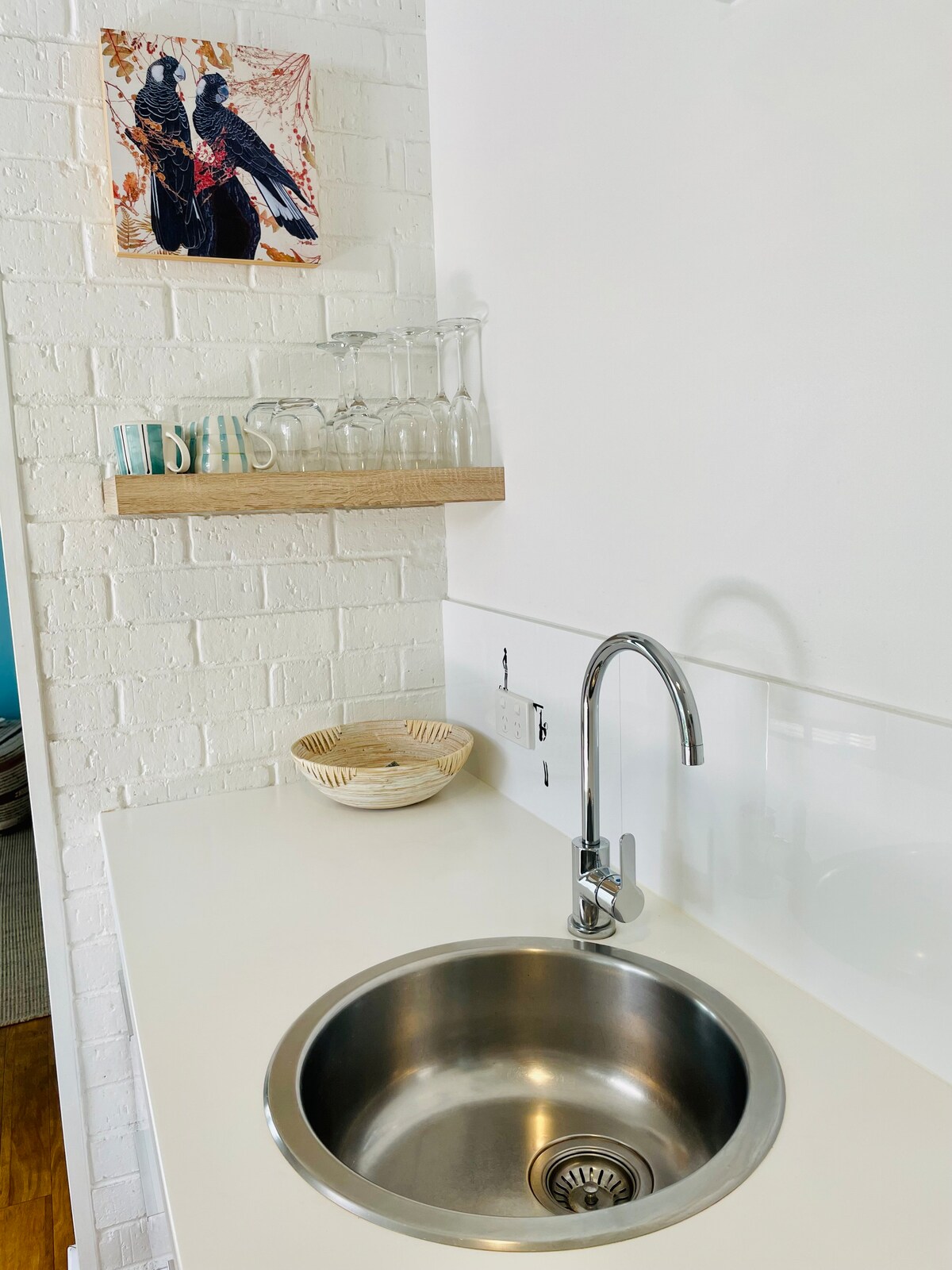 The little siren is a self contained studio at the rear of our property. It’s located in a unique little pocket of Margaret River, looking out over Gas bay surf break and the Cape Leeuwin ridge. An adults only ( no babies either sorry), oasis in which to explore the cape, snuggle up & read books or simply spend the night watching stars from your bed. Our bedroom is on a mezzanine level, the bathroom is downstairs, please note that there are multiple stairs on the property.