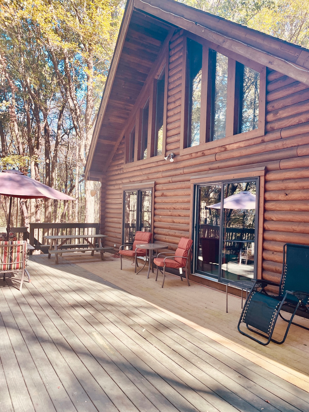 Peaceful and relaxing authentic log cabin home nestled on 5 acres bordering Moraine State Park. This spacious home is a Haven for those seeking a tranquil escape. Includes large open living room and fully stocked kitchen. Hosts 4 bedrooms and a large balcony overlooking the woods. Other amenities include wifi, smart televisions, a grill, and a fire pit. The finished basement has arcade games and board games. Moraine State Park is minutes away or hike / bike from the home.