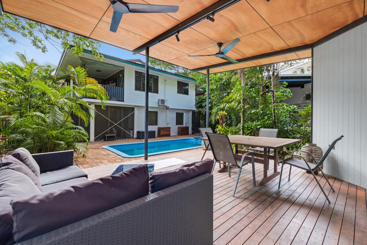 Spacious 4BR townhouse in a quiet tropical pocket of The Gardens, minutes from Darwin CBD, perfect for families, mates' trips & work crews. Sleep 9 in bedrooms (king master w/ ensuite), plus a living room, daybed, and fold-out bed to sleep up to 11. Private fenced courtyard with spa + gas BBQ, secure auto-gate/lock-up parking (plus free street parking), fast Wi-Fi, large TV & a dedicated workspace. Pets are welcome with approval. Close to Mindil Markets, Botanic Gardens & the Waterfront.