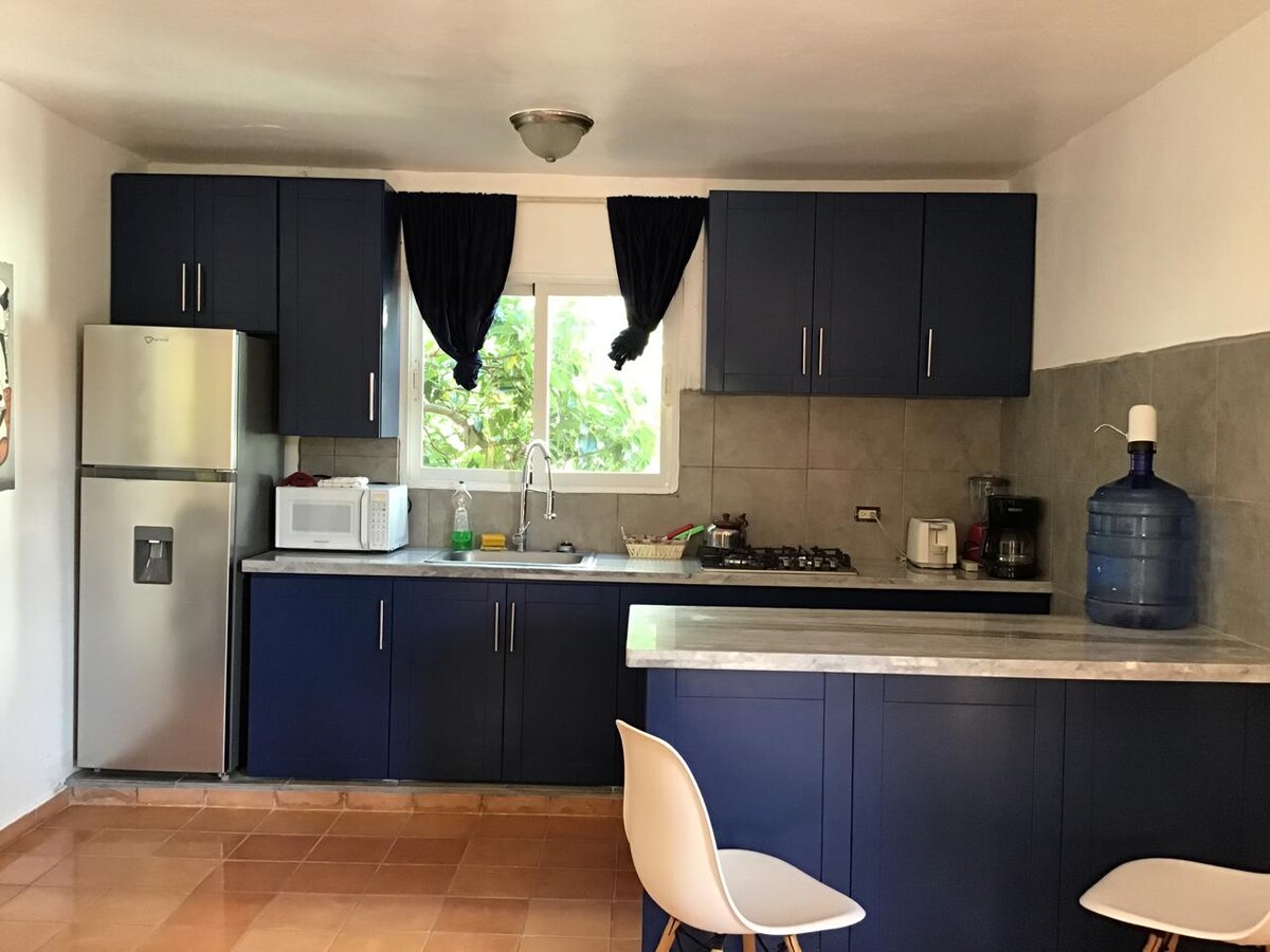 This beautifully located studio, directly by the pool and surrounded by palm trees and tropical plants, offers a peaceful retreat with privacy. It is situated in the Almendra community, ProCab, Cabarete. The complex features a cozy bar with a BBQ area, as well as a relaxing jacuzzi. King-size bed, Fully equipped kitchen, bathroom Private seating area with pool view. Only a 10min walk to the main beach in Cabarete. 2 mountain bikes are available for a small fee of 2 USD daily per bike.