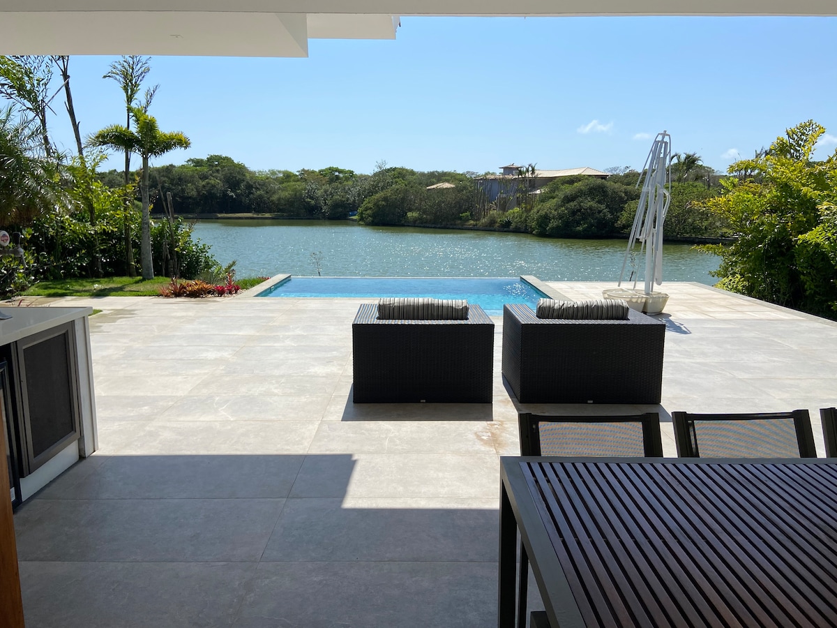 Welcome to Casa Aretê Marina, located in the upscale Aretê Búzios condominium. The house is accessible by sea, land, and air. Relax in spacious bedrooms with Super King and Queen beds, TV, and air conditioning. The living area features comfortable sofas and a 65” TV with free channels. The kitchen is fully equipped, and there is a workstation with Wi-Fi. Enjoy the garden with a swimming pool, grill area, garage for 6 cars, and a ramp for jet skis and boats.