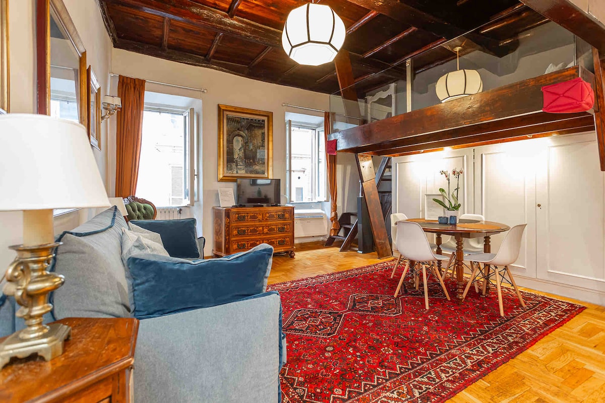 - Panoramic loft in one of Rome's best streets just a few steps from Piazza di Spagna. - Just steps away from the main sightseeing hotspots. - Extremely well positioned and connected to all major transport systems. -Gym a few steps away. - Electric window shades. - Very quiet. - Design furniture and accessories. - Very safe. - Large windows. - Sunny terrace with large sofas and dining table. - Chair lift for luggage. - Possibility of hiring a private driver to and from the airport.