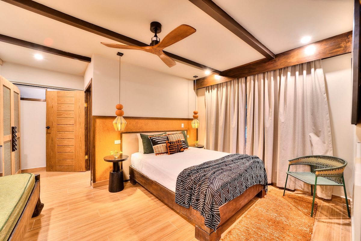 Garden-Level Queen Room in a Boutique Villa | Breakfast Included This private garden-level room WITH A SHARED BATHROOM WITH 1 OTHER ROOM features a queen-size bed and is ideal for two guests. It is one of ten rooms within a shared boutique retreat villa. Enjoy a private entrance from the garden and peaceful garden views. The room shares a well-maintained bathroom with just one other guest. Daily breakfast is included. 100meters to Cocles Beach