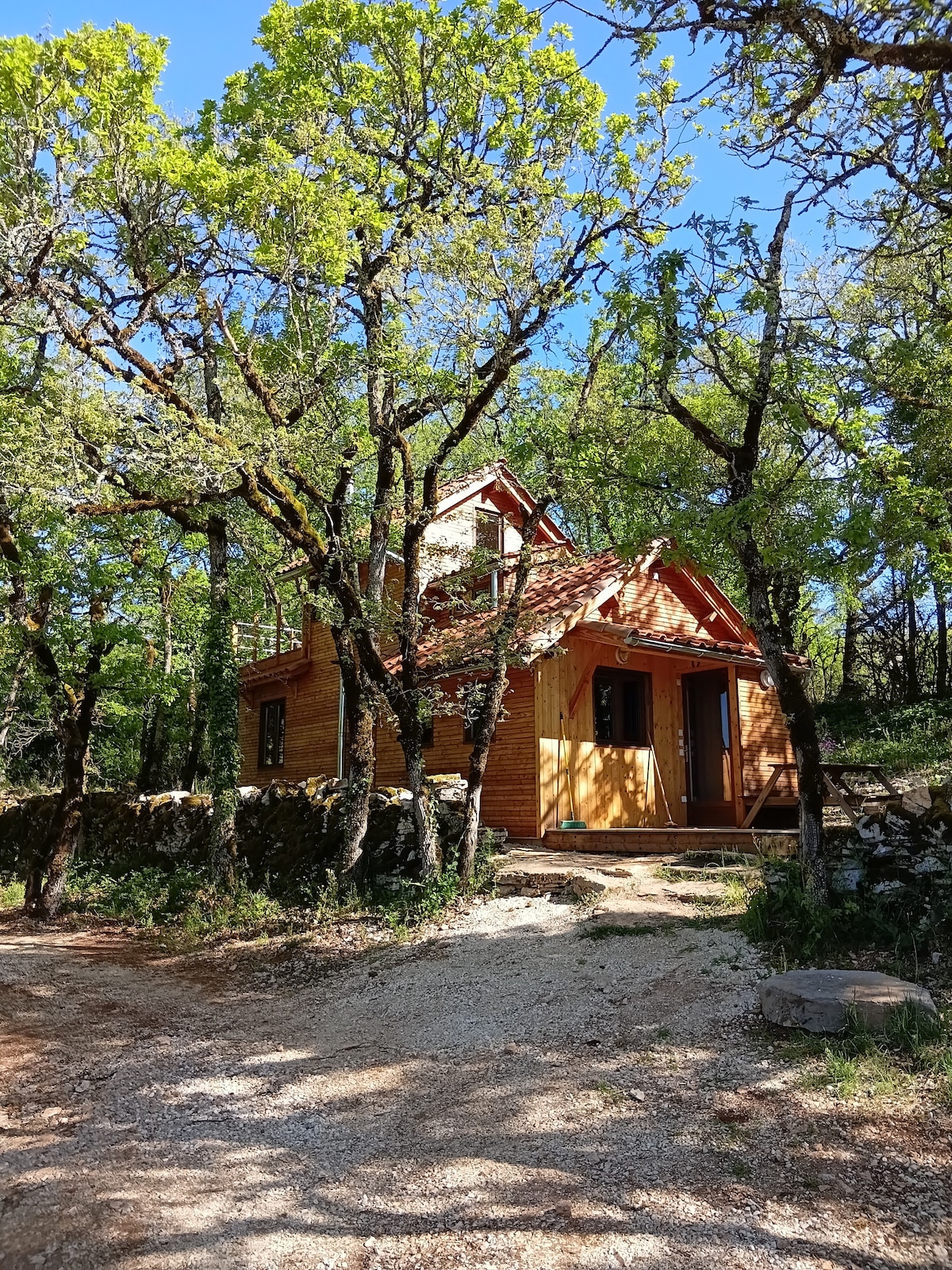 LES TRIGONES DU CAUSSE - SAINT MARTIN LABOUVAL, in the Lot region. Also on lestrigonesducausse and on IG This eco-friendly wooden house, with all facilities, located between the trees, offers you an immersion in the heart of nature during your getaway or vacation. Linens included. WIFI. Our swimming pool (shared with my husband and me) is located 20 meters from La Trigone, you have free access via a separate stair from 01/05 to 30/09. 2-night minimum stay. Opened all seasons. No TV.