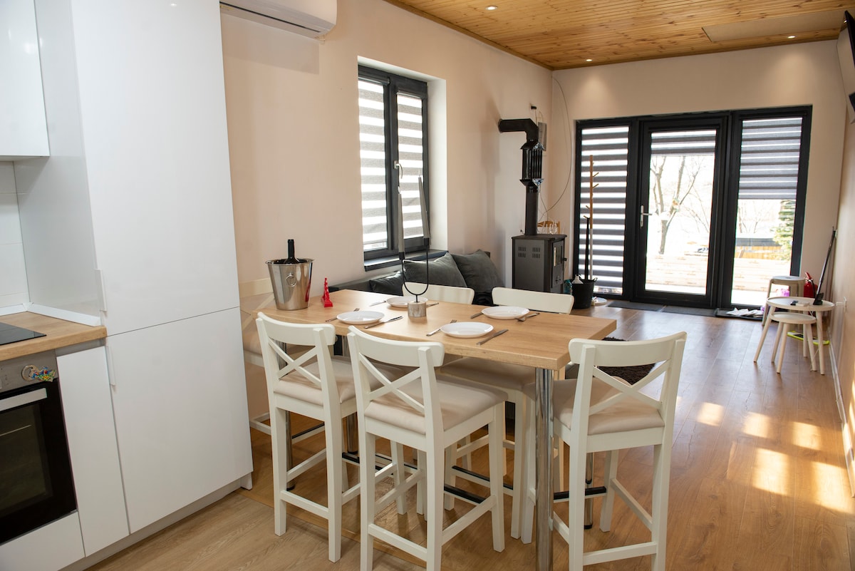 Casa Noastră invites you to create unforgettable memories. With 144 sqm of elegance, this oasis of tranquility offers 3 spacious bedrooms, a welcoming living room and 4 luxurious bathrooms. Let yourself be enchanted by spectacular sunsets on the romantic terrace or immerse yourself in the pleasures of the 700 sqm courtyard. Here, relaxation becomes art with a hot tub, swimming pool, sauna and jacuzzi. Enjoy the aroma of the outdoor barbecue, while the children enjoy 400 sqm of green space, a magical realm for play and adventure.