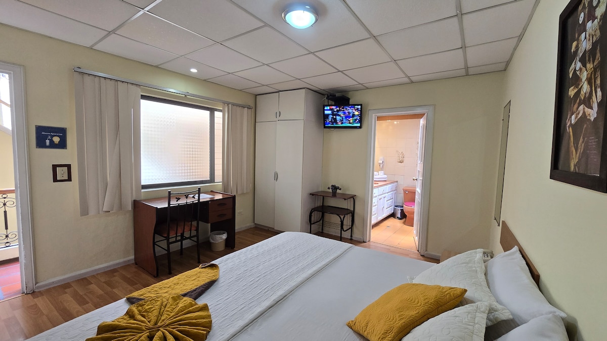 PRIVATE ROOM,in the heart of Cuenca. This cozy space will allow you to experience the city We offer daily free cleaning service, satellite TV, 10 Mbps wi-fi Internet, private bathroom, laundry service,refrigerator, living room, kitchen, gym and small terrace for smokers.