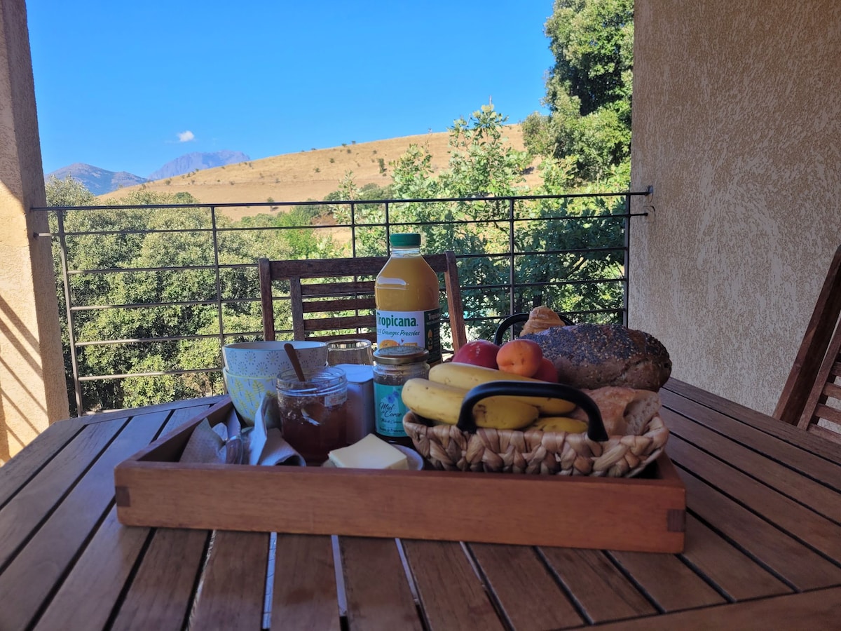 ALTIANI, very beautiful typical village of central Corsica with a rich heritage, relax in this quiet and elegant 45 m2 accommodation. Enjoy an equipped kitchen/living room, private bathroom with toilet. A large vaulted bedroom, spacious, air conditioning – private terrace, breathtaking views of the mountain ranges – privileged natural environment. In the heart of Corsica, halfway between sea/mountain, river, Aléria and the beaches 30 minutes away, Corté 20 minutes away, beautiful hikes in the Restonica Valley, the Lakes, GR20.