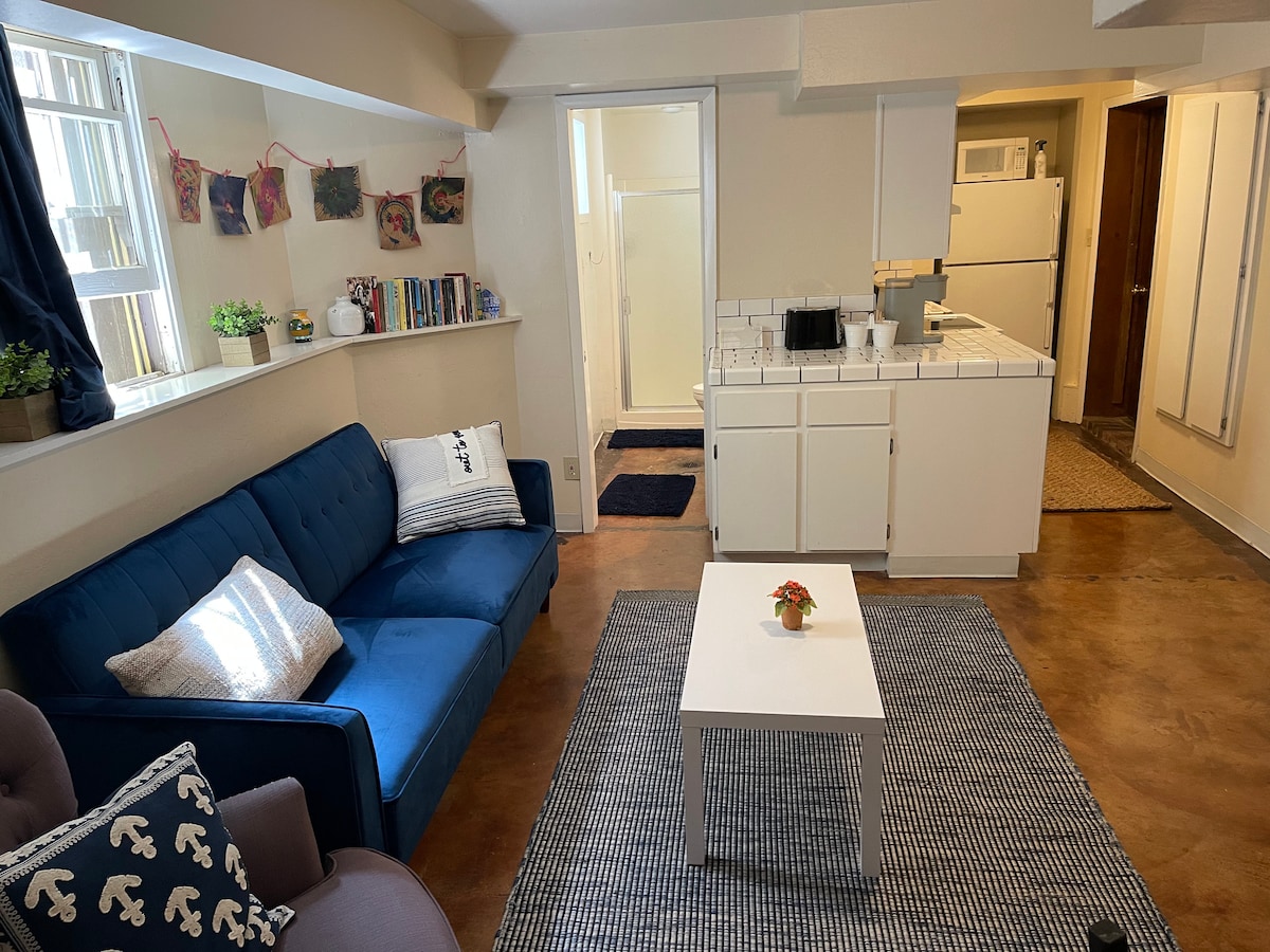 Welcome to our tiny home nestled near Downtown Riverwalk! This cozy retreat boasts 1 bedroom/ 1 bath, a fully equipped kitchen, top-tier appliances including Miele washer/dryer, dedicated office space. Enjoy your walk to the Tower Bridge & Old Sacramento, with the California Capitol just 1.5 miles away! Come experience the perfect blend of comfort, convenience, & proximity to Sacramento's key attractions!