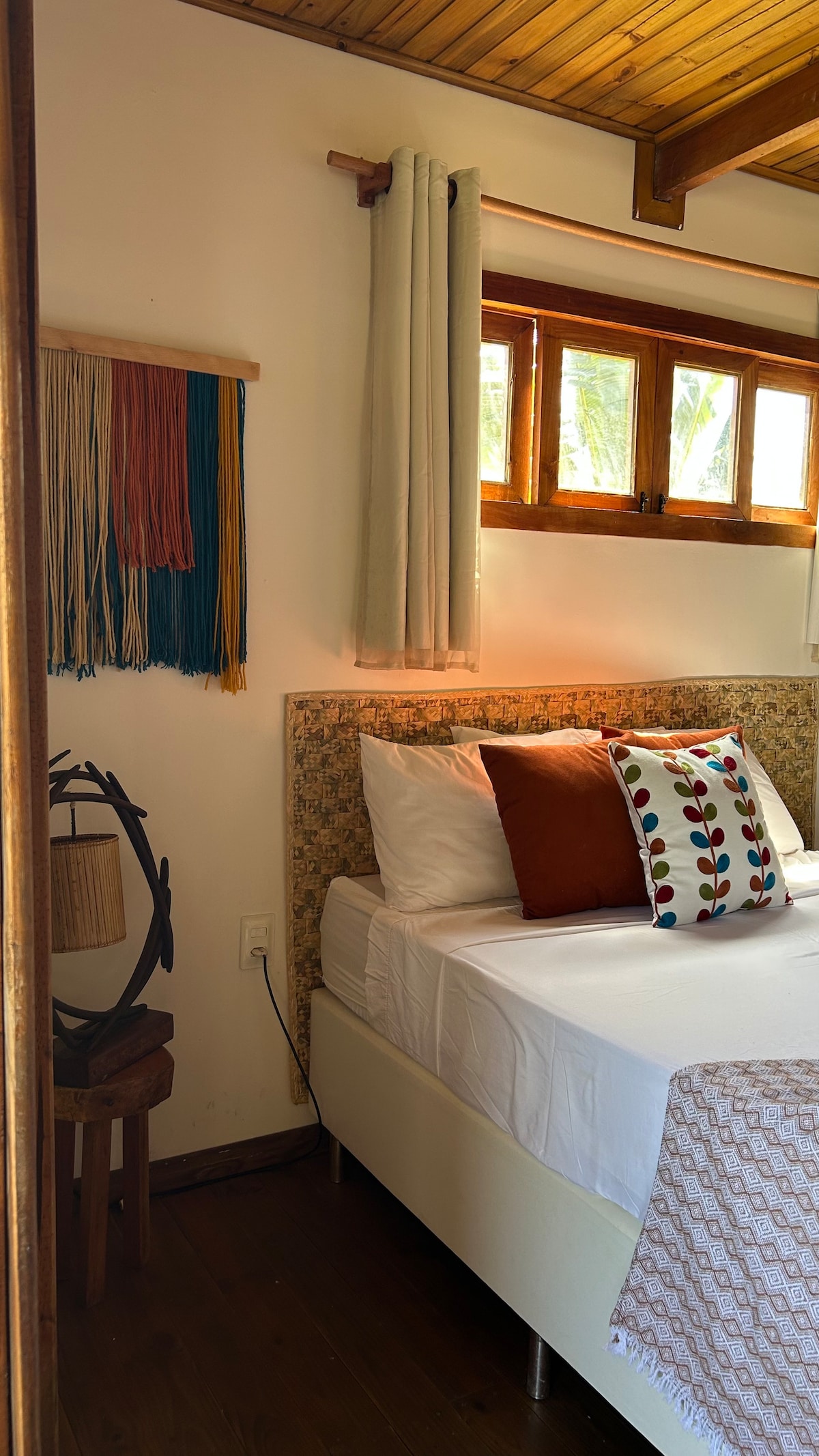 It is a calm and stylish space 200 meters from the beach, amid native vegetation! We are LGBTQIAP+ friendly and because we are away from the core of the community we enjoy silence and tranquility but five minutes from the hustle and bustle! The suite overlooking the trees is a guarantee of rest. The kitchen with a piaçava ceiling is beautiful and is prepared with the essentials. The bathroom has reserved spaces that ensure your privacy. Relax in this space! You'll love it!