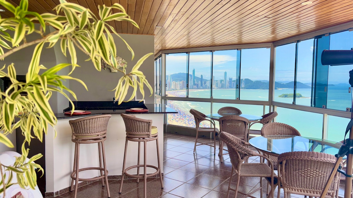 NEWLY RENOVATED. Very comfortable, top floor, a magazine penthouse with stunning views. Decorated with great refinement and sophistication. Fully equipped, 2 parking spaces, 2 swimming pools (open in summer), 180 m2 private on the 28th floor with the best view of Balneário Camboriú! Screens on bedroom windows, crib and baby bath! In the best location of the waterfront, in front of the Island, close to the main restaurants on the waterfront. Nearby markets, bakeries and pharmacies.