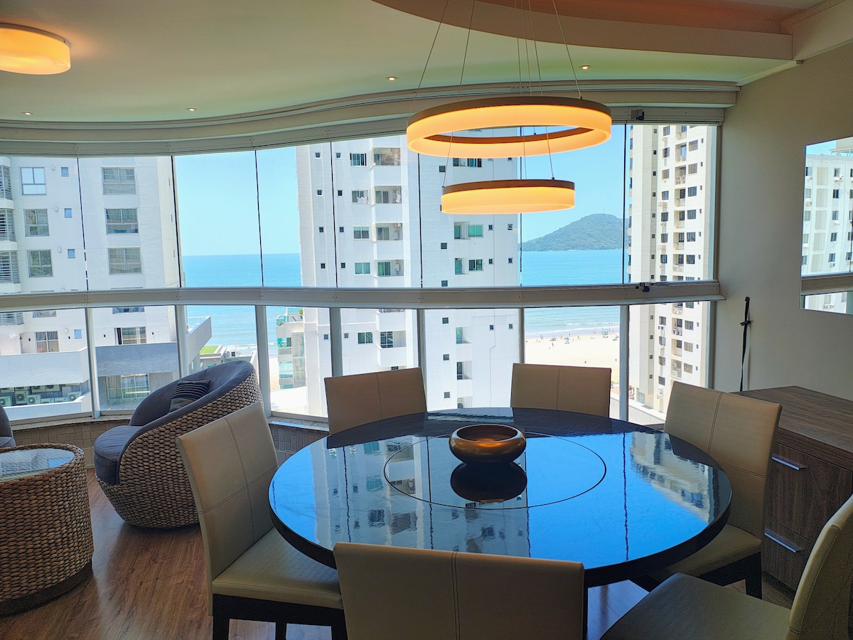 NEWLY RENOVATED. Very comfortable, top floor, a magazine penthouse with stunning views. Decorated with great refinement and sophistication. Fully equipped, 2 parking spaces, 2 swimming pools (open in summer), 180 m2 private on the 28th floor with the best view of Balneário Camboriú! Screens on bedroom windows, crib and baby bath! In the best location of the waterfront, in front of the Island, close to the main restaurants on the waterfront. Nearby markets, bakeries and pharmacies.
