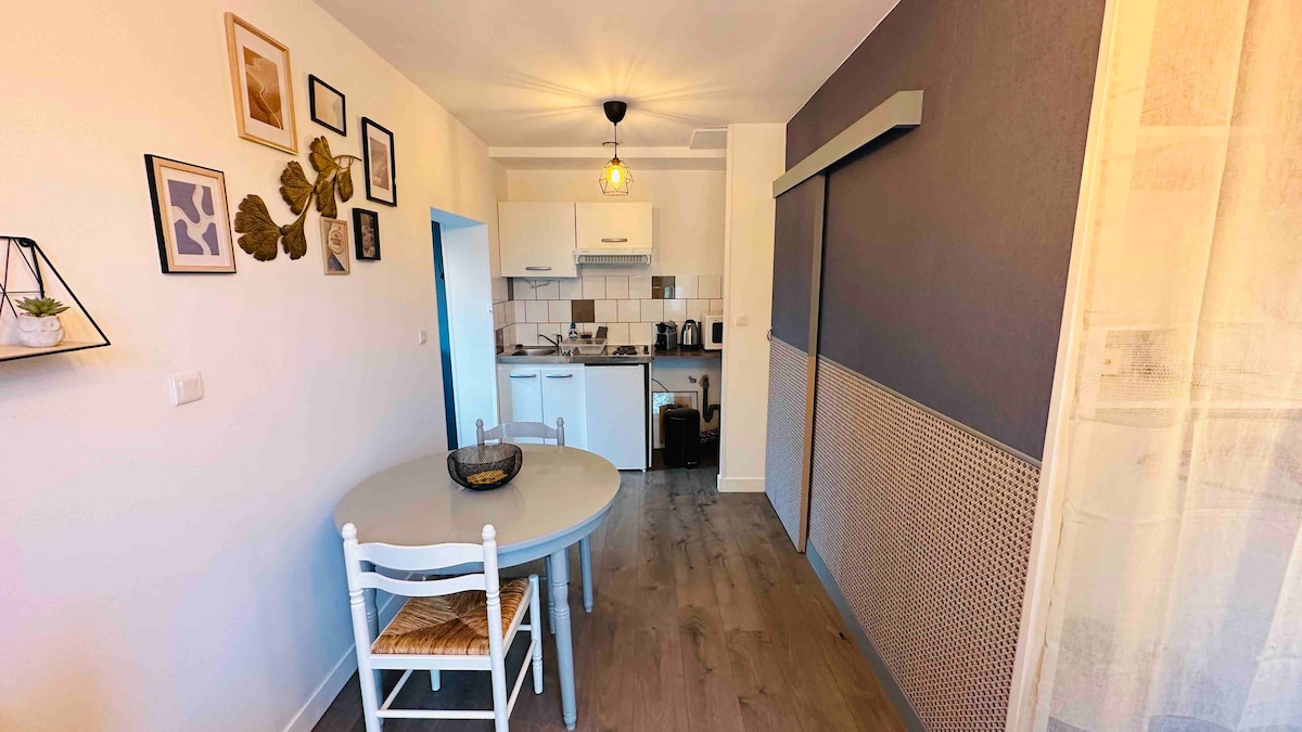 ⚠️ please enter the number of people. Charming studio in the countryside – 16 m² with all comforts The place is perfect for disconnecting and relaxing. 📌 Note: No television, no wifi (Internet with mobile network) – here, we really disconnect. Idyllic 🌿 setting: Located near a canal and wooded trails, you can enjoy beautiful walks in the heart of nature from the doorstep.