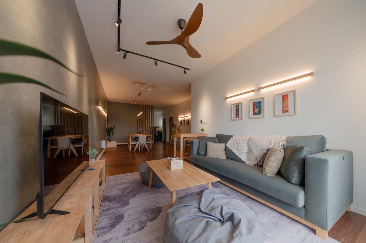 Facing greenery at highest floor in Brinchang town, Emeralds Avenue. 4 queens + 2 single beds for 10 pax & 3 baths. 3 car park near lift. Senior friendly. Fully fitted kitchen with Coway water purifier. Behind Centrum Mall. walking distance to more than 100 eateries, Burger King, KFC, Billion supermarket, wet& Cactus Valley. Free Unify & Netflix. 55” smart TV. We provide mahjong & carrom tables For 20 pax you can book connecting unit. EA922-Link https://www.airbnb.com/h/josplaceemera ma