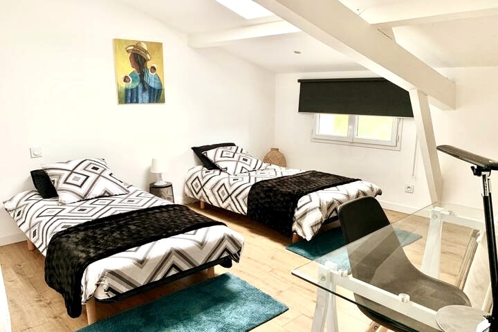 At the foot of the ramparts and a somewhat secret staircase leading to the heart of the medieval city, our charming, fully renovated and equipped house is ideal for your family! You will make the most of this wonderful monument and relax in a serene and comfortable place with careful decoration. The 2 bedrooms each have their own bathroom (shower) and a television screen, just like in a hotel.