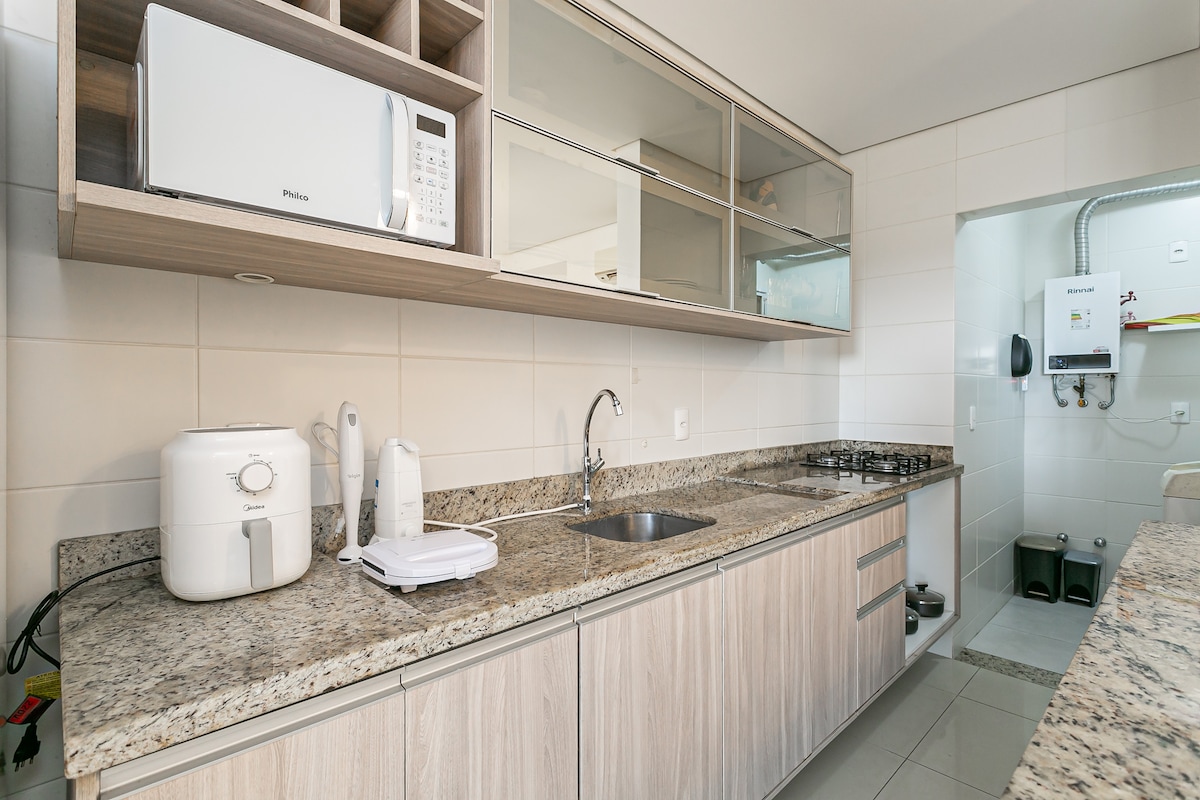 Cozy apartment with a lot of "borogodó" in Thai Beach Home Spa condominium, high standard BEACHFRONT, heated pool and spa. 1 bedroom, living room integrated with the kitchen, decorated and equipped environments for your stay to be perfect. Space accommodates up to 4 people, 2 in the queen bed and up to 2 in the large sofa bed in the living room. Leisure available: - Outdoor pools and Jacuzzi - Indoor HEATED pool and warm SPA; - Gym; - Massage room; - Children's playground; - Movie theater