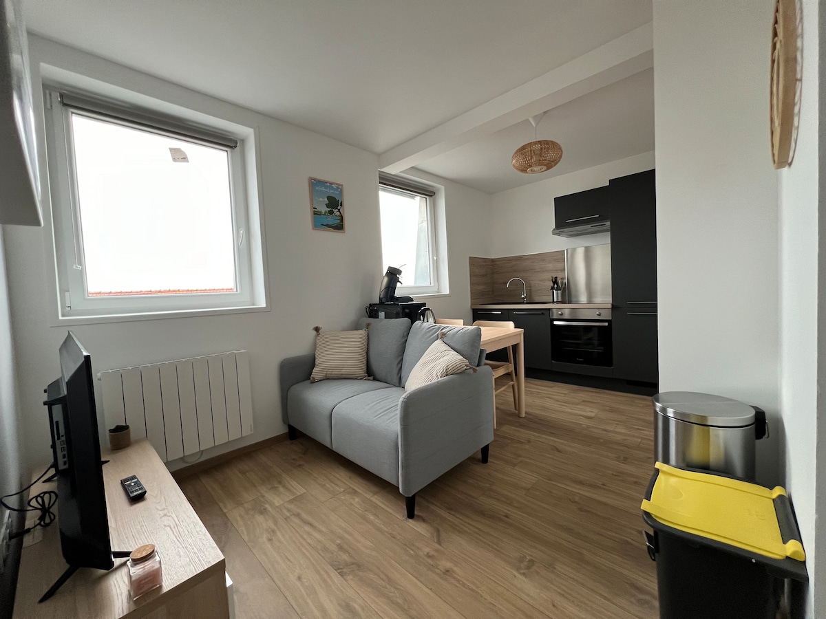 Kick back and relax in this tastefully furnished, calm and stylish space. Large living room with fully equipped open kitchen 2 beautiful bedrooms with dressing room (new 160 cm bedding with bed linen provided) walk-in shower Separate toilet Private terrace with garden furniture and BBQ Closed private parking and motorcycle garage nearby: Shops 5 minutes by car Amusement park (Bagatelle, Laby'parc) Le Touquet beach is a 10-minute drive The little extras: Wifi baby equipment