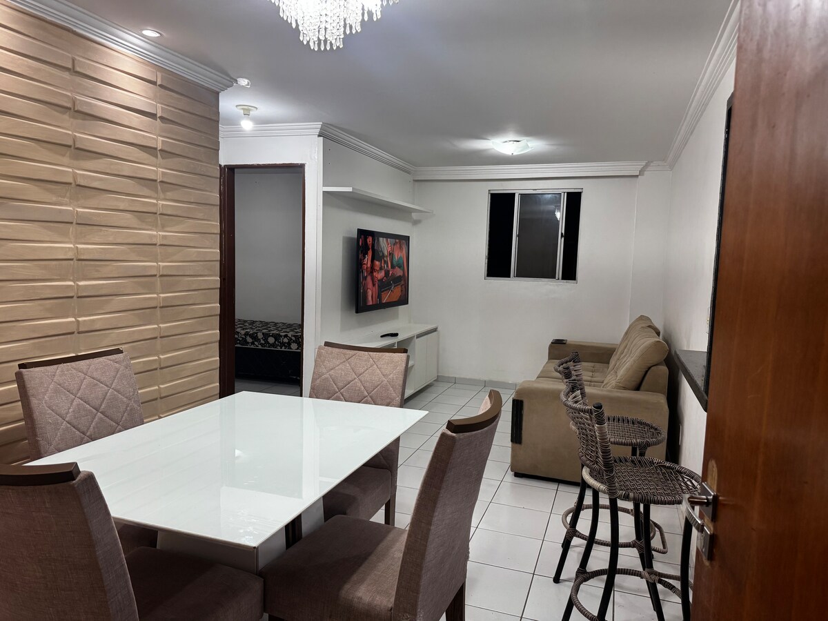Your family will be close to everything when you stay at this centrally-located place. Apartment that accommodates up to (04) people, with the following amenities: (01) bedroom, with a double bed, (01) living room, (01) kitchen, (01) bathroom, in the living room there is a sofa bed that sleeps up to two people, the common areas have a swimming pool, fitness center, ballroom, playground, excellent location, close to the CORPUS fitness center and BAR DO CUSCUZ
