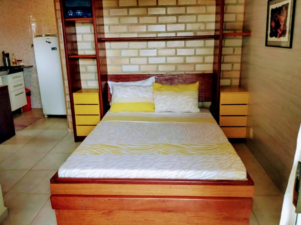 Come and enjoy the beauty of Ilha Grande in the Céu suite. Pleasant, simple and family atmosphere. Space recently renovated for the better comfort of our guests. The Céu suite features a bedroom, kitchen, bathroom and balcony. In the bedroom, there is a double bed and a single bed; a clothesline to hang clothes, air-conditioning, a fan, a 32" LED TV with basic Sky, Netflix, YouTube and other apps. The suite features an equipped kitchen and a balcony with a hammock, dining table and fish tank.