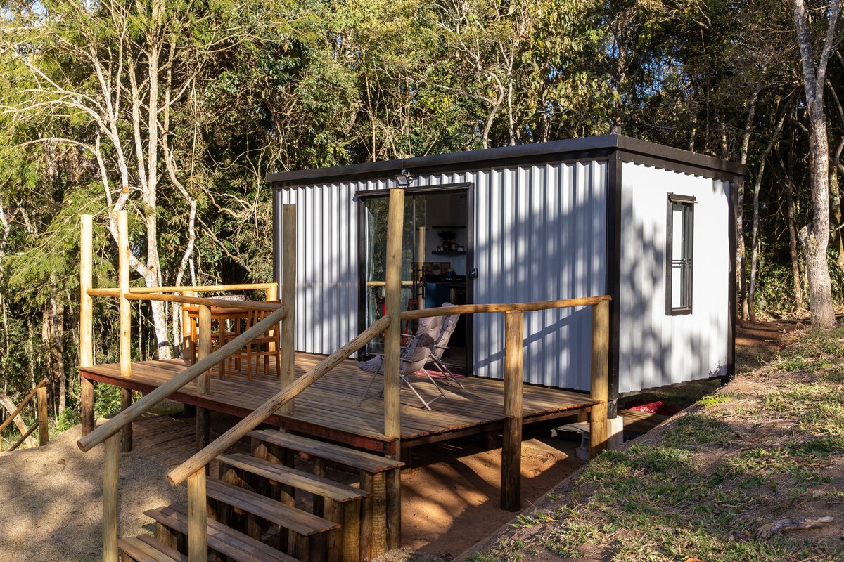 -✅ 5km from the tourist center - in-room soaking✅ tub -✅ 2 smartv - full✅ kitchen -✅ barbecue -✅site for campfire -✅air conditioning (hot and cold in the room) -✅ quiet - fibre✅ internet. The "Imbiri Container"is in the midst of nature. Surrounded by araucaria at 1657m altitude in one of the highest regions of Campos do Jordao the container was prepared with thermal and acoustic coating. Terá as part of the 1km journey of dirt road. No food included!